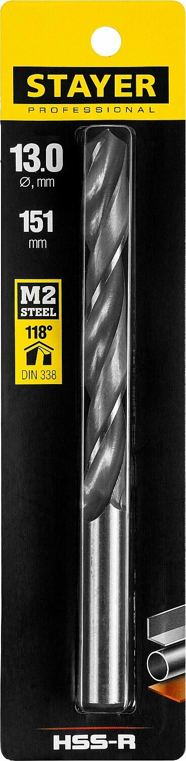 STAYER HSS-R, 13.0 х 151 мм, быстрорежущая сталь P6M5, сверло по металлу, Professional (29602-13)