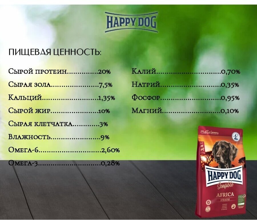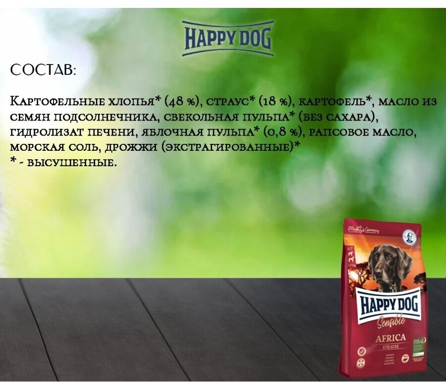 Корм для собак HAPPY DOG Африка мясо страуса сух. 4кг (размер: Для всех пород)