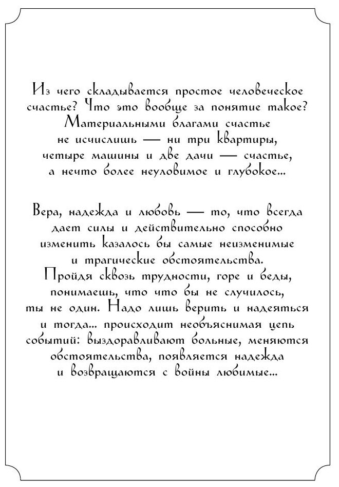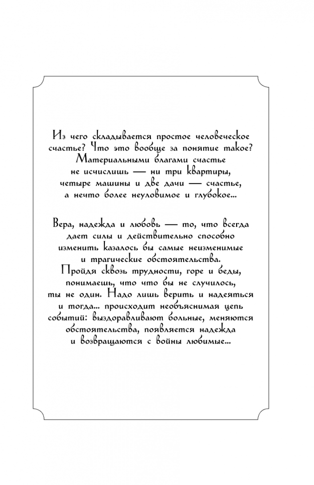 Чудесные исцеления, фантастические повороты судьбы, помощь, откуда не ждали… В этой книге собрано 100 реальных историй о простом человеческом счастье и самом главном в жизни, источнике покоя, радости и добра. Эта книга поможет вам обрести надежду и укрепиться в вере, сохранить теплоту и нежность чувств друг к другу, увидеть красоту мира и человеческого общения и понять, что в нашем сердце уже есть все нужное для счастья.