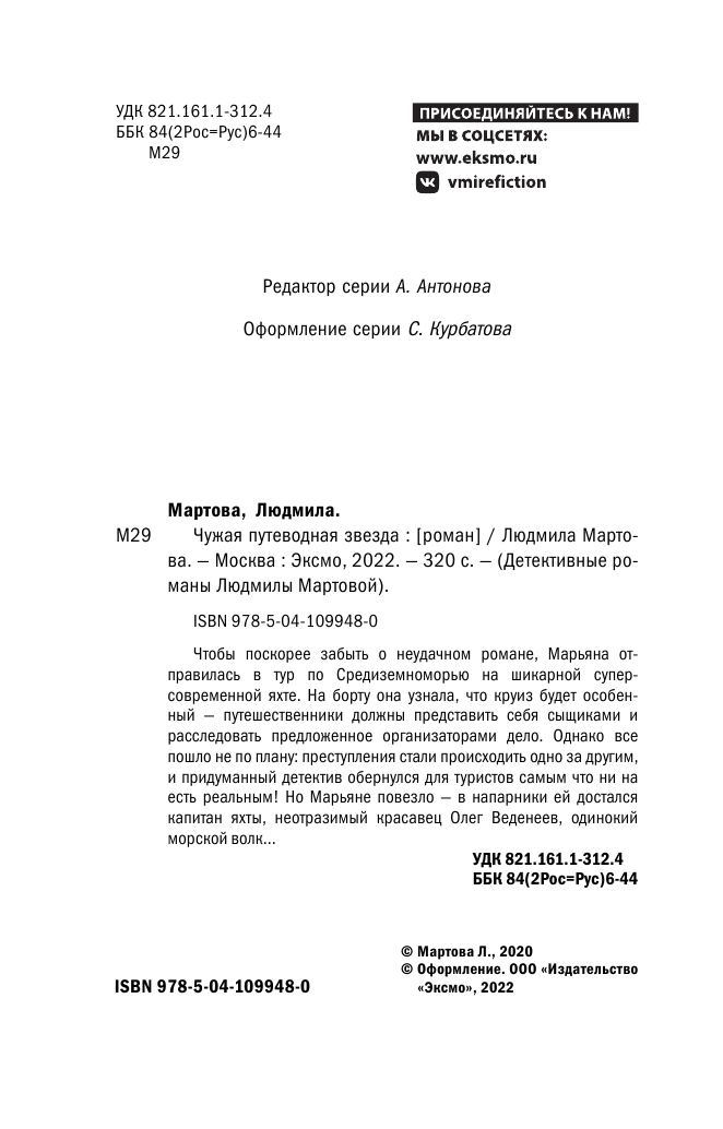 Сервис сравнения цен СкидкаГИД предлагает сравнить цены на товар «Книга: Чужая путеводная звезда (Людмила Мартова); Эксмо, Редакция 1, 2020»