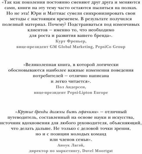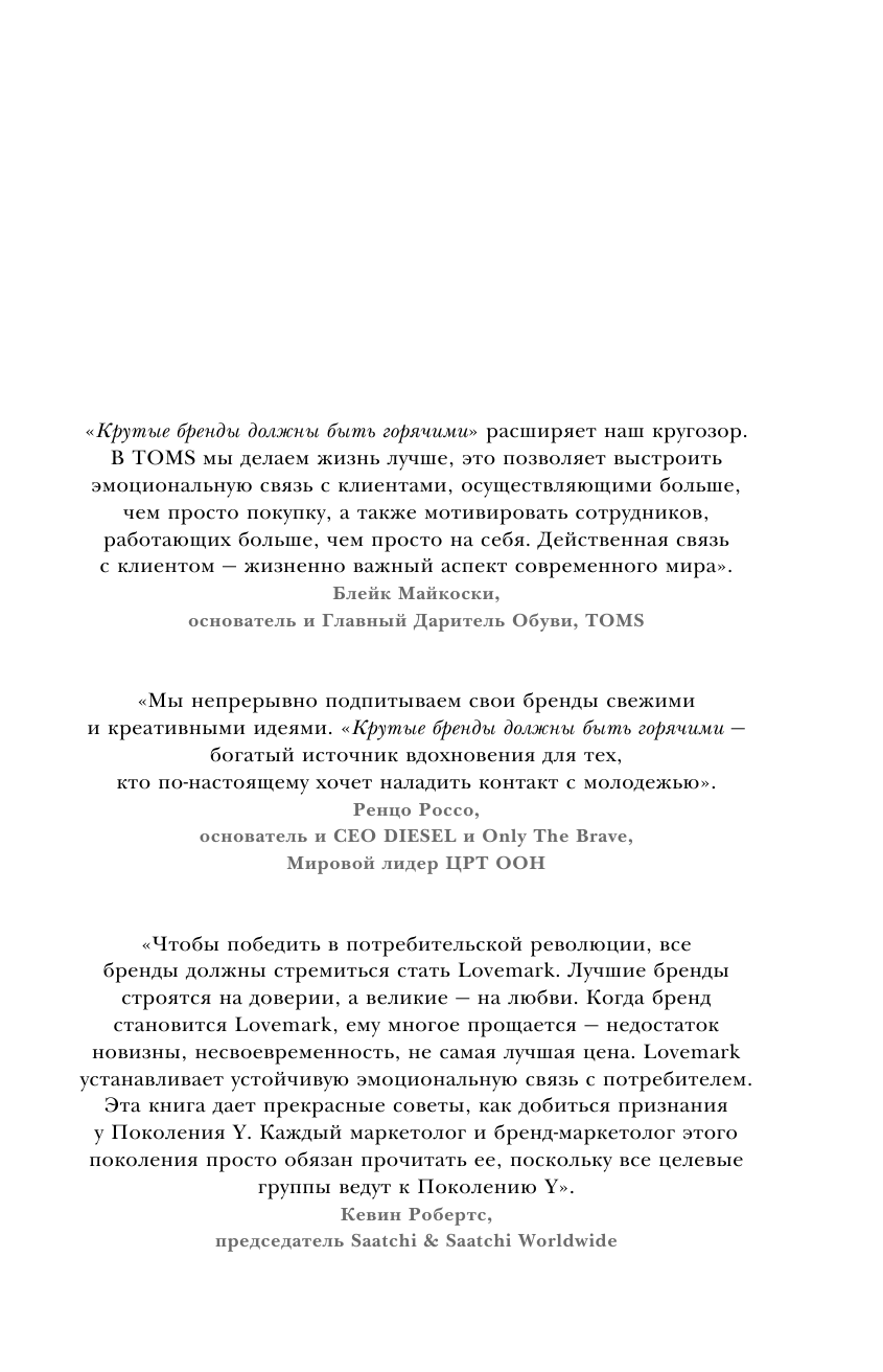 На основе интервью с руководителями маркетинга таких успешных брендов, как BBC, Converse, Coca-Cola, ebay и mastercard, а также исследования стратегий H & M, MTV и Diesel, авторы раскрывают секрет успешного бренда. Вы узнаете, как сделать свой продукт узнаваемым, увеличить продажи и отвечать требованиям каждого поколения потребителей.
