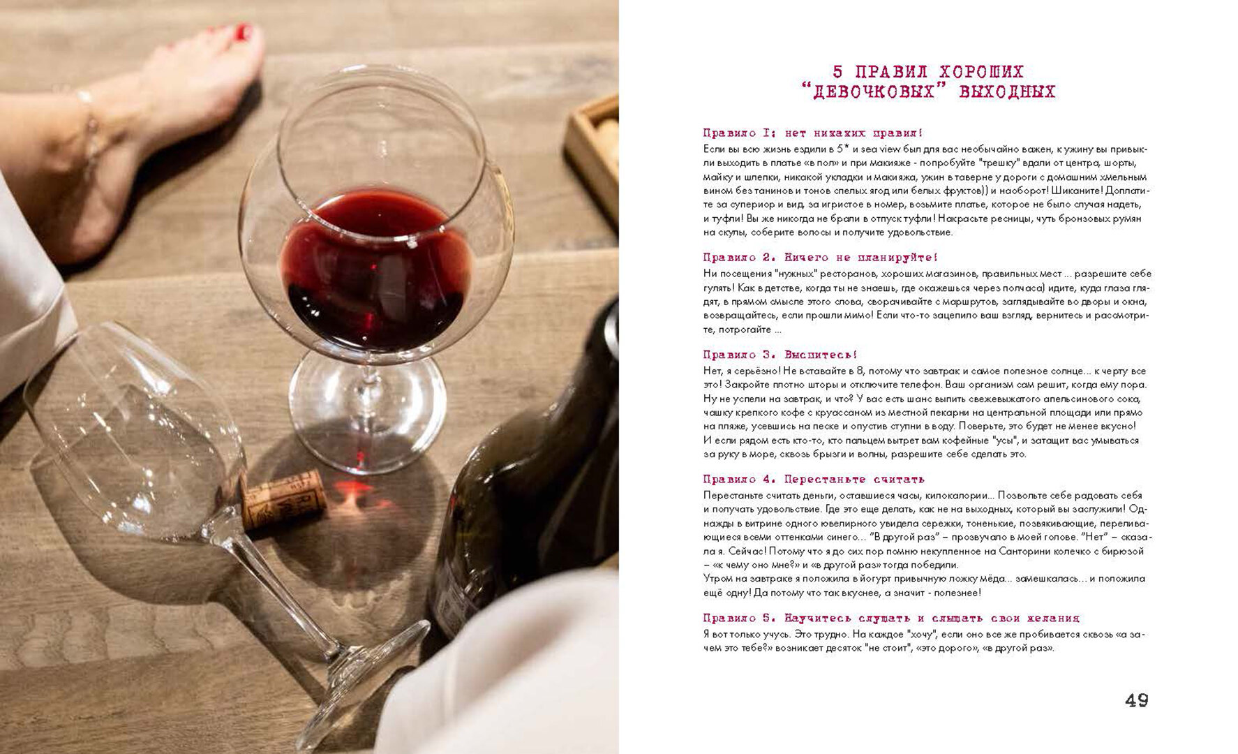 Книга - огонь! Чудесные фотографии, красивые доступные рецепты, но самое главное - информация про вина, для нас, девочек. Все как мы любим - понятно, легко, вкусно, иронично. Книга про любовь к еде и вину, про любовь к друзьям и к себе. Мне эту книгу подарили. Теперь сама заказываю в подарок подруге. За иллюстрации, которые хочется съесть, отдельное спасибо авторам!!!