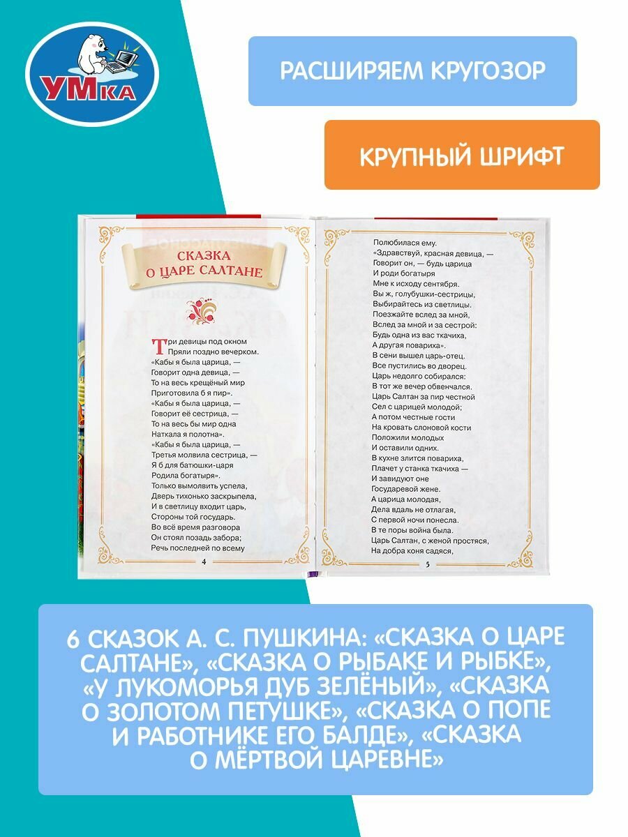 Читая книгу "Сказки. А.С. Пушкин" ТМ "УМка", ребёнок будет развивать: