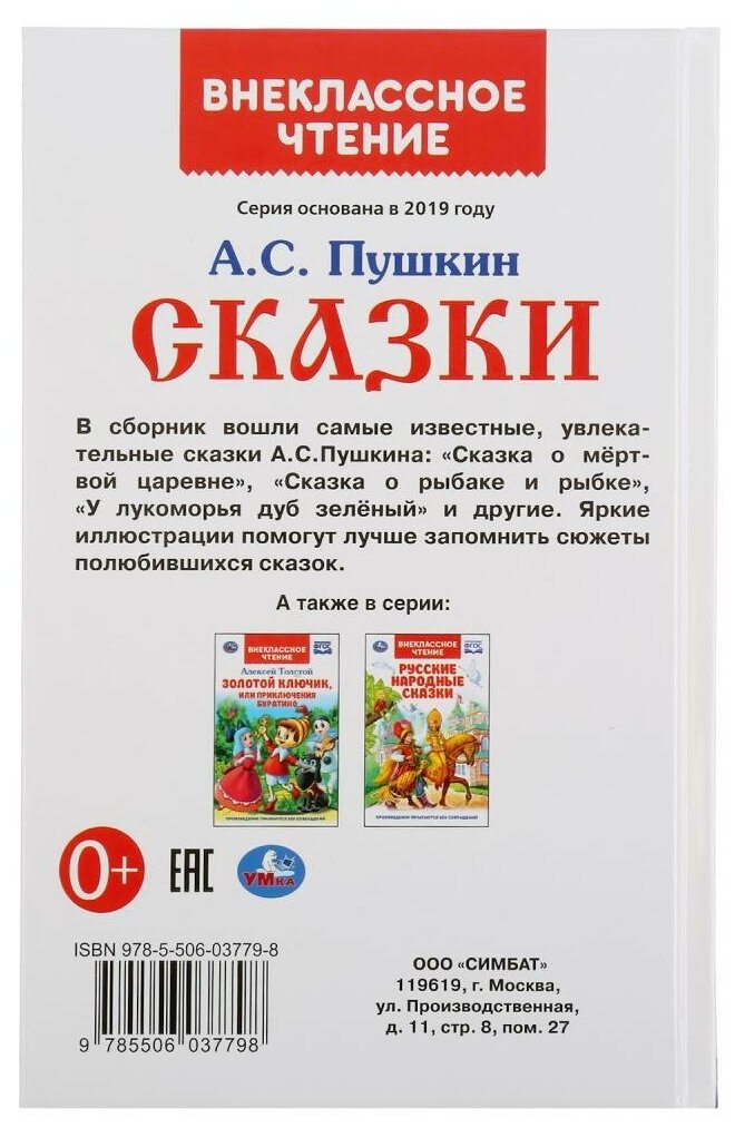 Книга: Сказки (Александр Сергеевич Пушкин); Умка, 2019
