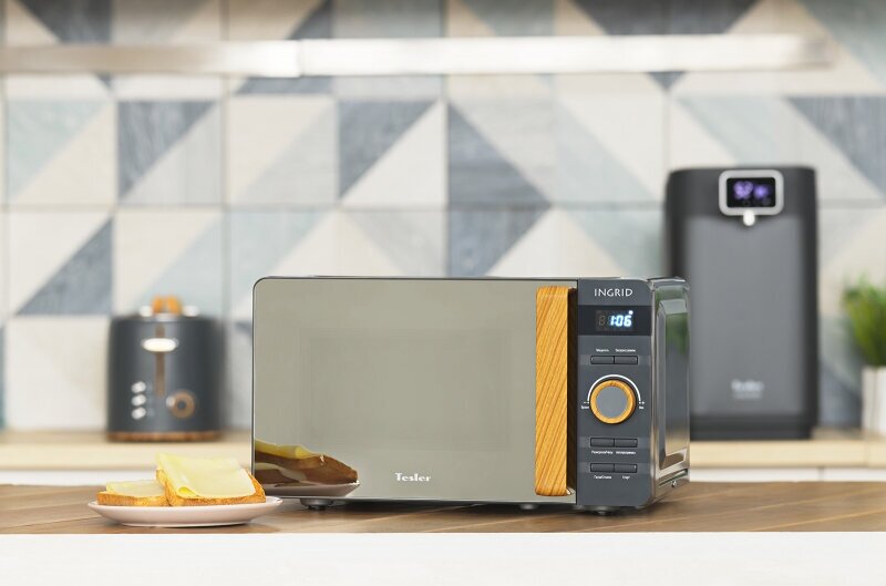 Тем, кто ценит тепло и уют домашней обстановки идеально подойдет скандинавский стиль микроволновой печи Tesler INGRID ME-2044. Она просто создана для того, чтобы стать ярким акцентом на вашей кухне благодаря изящным линиям корпуса, зеркальной дверце, декоративным вставкам с приятным на ощупь тактильным покрытием Comfort Touch и высокому уровню автоматизации. Покрытие камеры Crystal Clear позволяет быстро и легко избавиться от загрязнений внутри СВЧ-печи, а декоративные поверхности получили дополнительную защиту от пятен и жира. Обладая богатым набором функций и автоматических программ микроволновая печь Tesler INGRID, вместе с тем, сочетает в себе простоту использования и безопасность. Режим защиты от детей, высокое качество комплектующих и материалов, современное электронное управление - всё это обуславливает комфорт и простоту использования, а также высокую надёжность и долговечность микроволновой печи ME-2044. Печь имеет широкий функционал: режим разморозки, экспресс-режим, быстрый старт, 8 автопрограмм, программируемое по этапам приготовление, таймер. Вместительная (20 литров) при компактном размере - легко впишется в интерьер вашей кухни и не займет много места. Информативный, но при том компактный LED-экран с белой подсветкой.