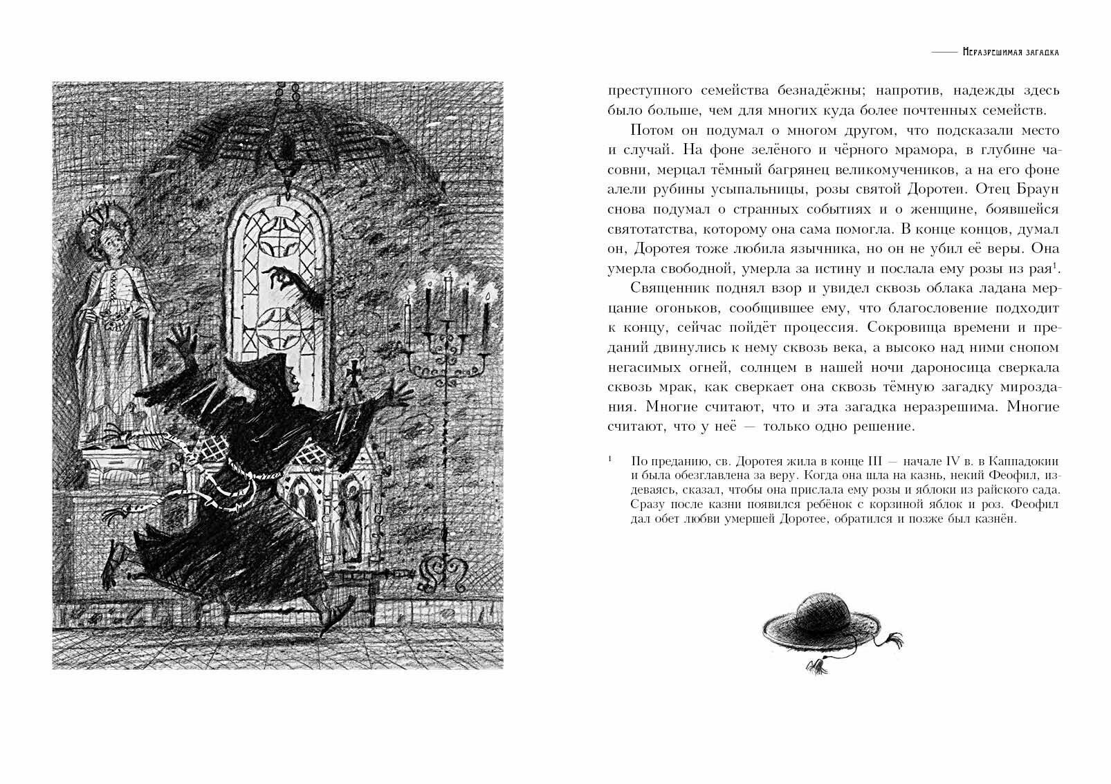 Несколько человек загадочным образом пропали, открыв магическую книгу, - что увидел в ней отец Браун и как сумел раскрыть тайну исчезновений? Поэт совершил романтический побег с прекрасной дамой - чем ему помог маленький священник, и кому на самом деле он помог? Свидетель увидел, как один человек преследует другого, - как понять, кто за кем гнался? Рассеянность отца Брауна подчас вызывает смех - но его неординарность, острый ум и способность находить разгадку самых непостижимых тайн и запутанных преступлений покоряют читателя бесповоротно. А ещё у отца Брауна есть тайное оружие - это безграничная вера в людей и терпимость даже к закоренелым преступникам…