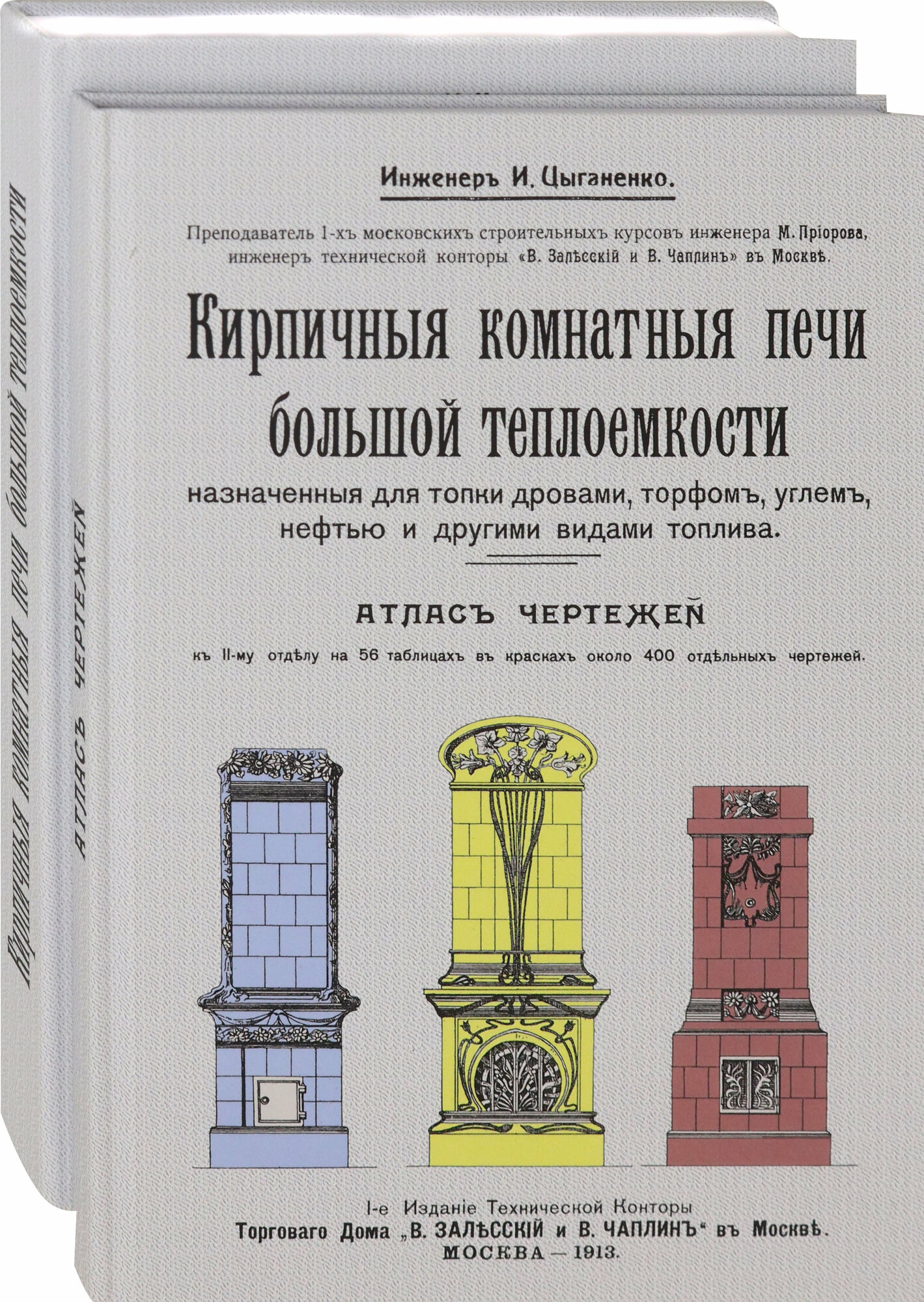 Репринт с издания. Москва. Техническая контора торг. дома "В. Залесский и В. Чаплин", 1913. 2 тома в 2-х переплетах. Инженер И. Цыганенко, преподаватель 1-х Московских строительных курсов инженера М. Приорова Том 1-й. Описание конструкций печей, теория расчетов, примерные проекты, вспомогательные справочные таблицы и расценочные ведомости. Том 2-й - Атлас чертежей. - 56 листов цветных чертежей. Тираж 30 экз. выполнен по технологии print-on-demand.