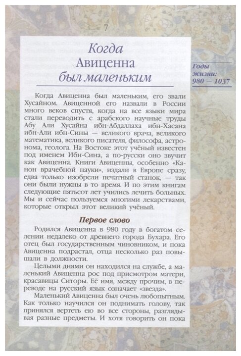 Это вторая книга из серии 5 книг, включает 9 биографий. Книга по размеру небольшая, стандартный средний размер. Бумага плотный офсет, не просвечивает. Иллюстраций много, они цветные, практически на каждом развороте 1-2 картинки. Часто используются картины известных мастеров в качестве иллюстраций. Шрифт достаточно крупный для самостоятельного детского чтения.