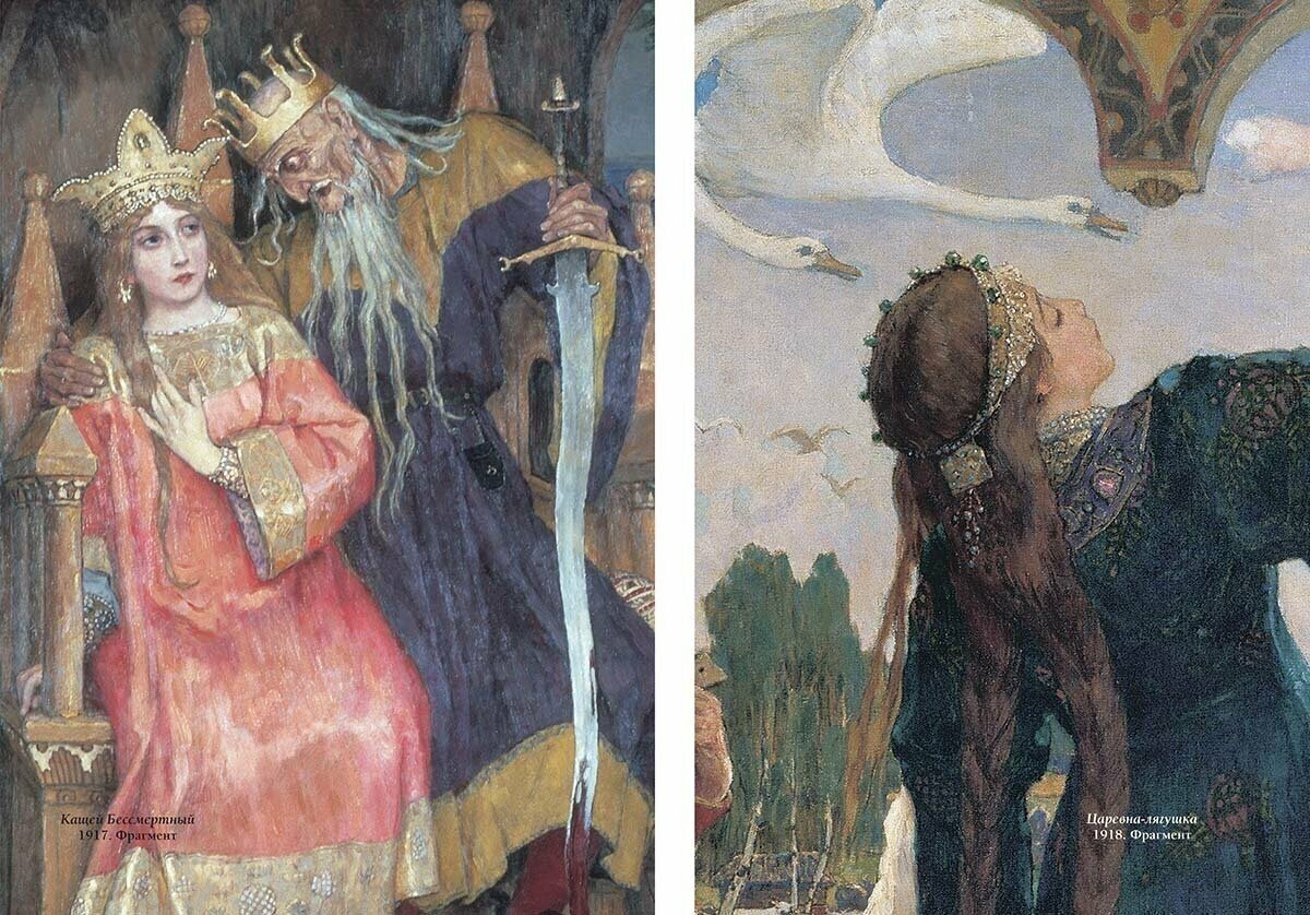 Книга прекрасная. Особенна она будет ценна после посещения Третьяковской галереи, где вы узнаете, что прототипом Добрыни Никитича в известной картине "Богатыри" послужил образ самого художника Виктора Михайловича, а в картине "Иван-царевич на Сером волке" внизу можно разглядеть лягушку-царевну с цветком в лапке и кикимору по правую лапу от волка. Вообще, надо признаться, в картины Виктора Васнецова влюбляешься и хочется погружаться глубже, узнать больше - историю возникновения и т.д. К сожалению, в этой книге этой составляющей нет.