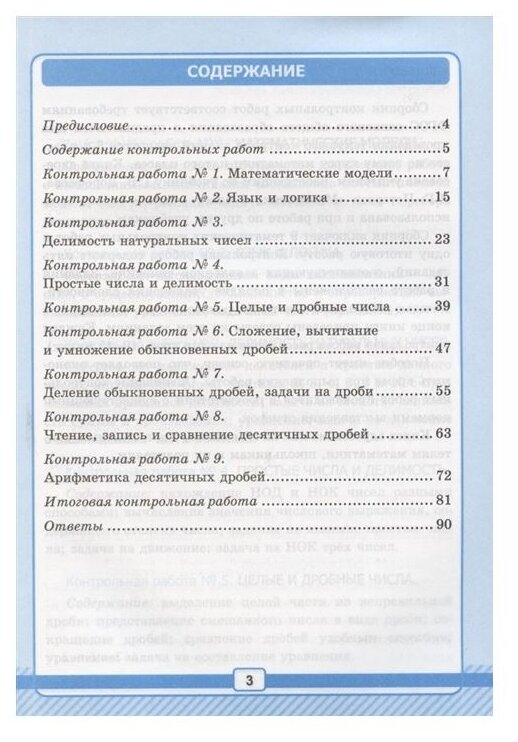 В сборнике представлены тематические контрольные работы для проведения текущего контроля знаний учащихся по всему курсу математики пятого класса.