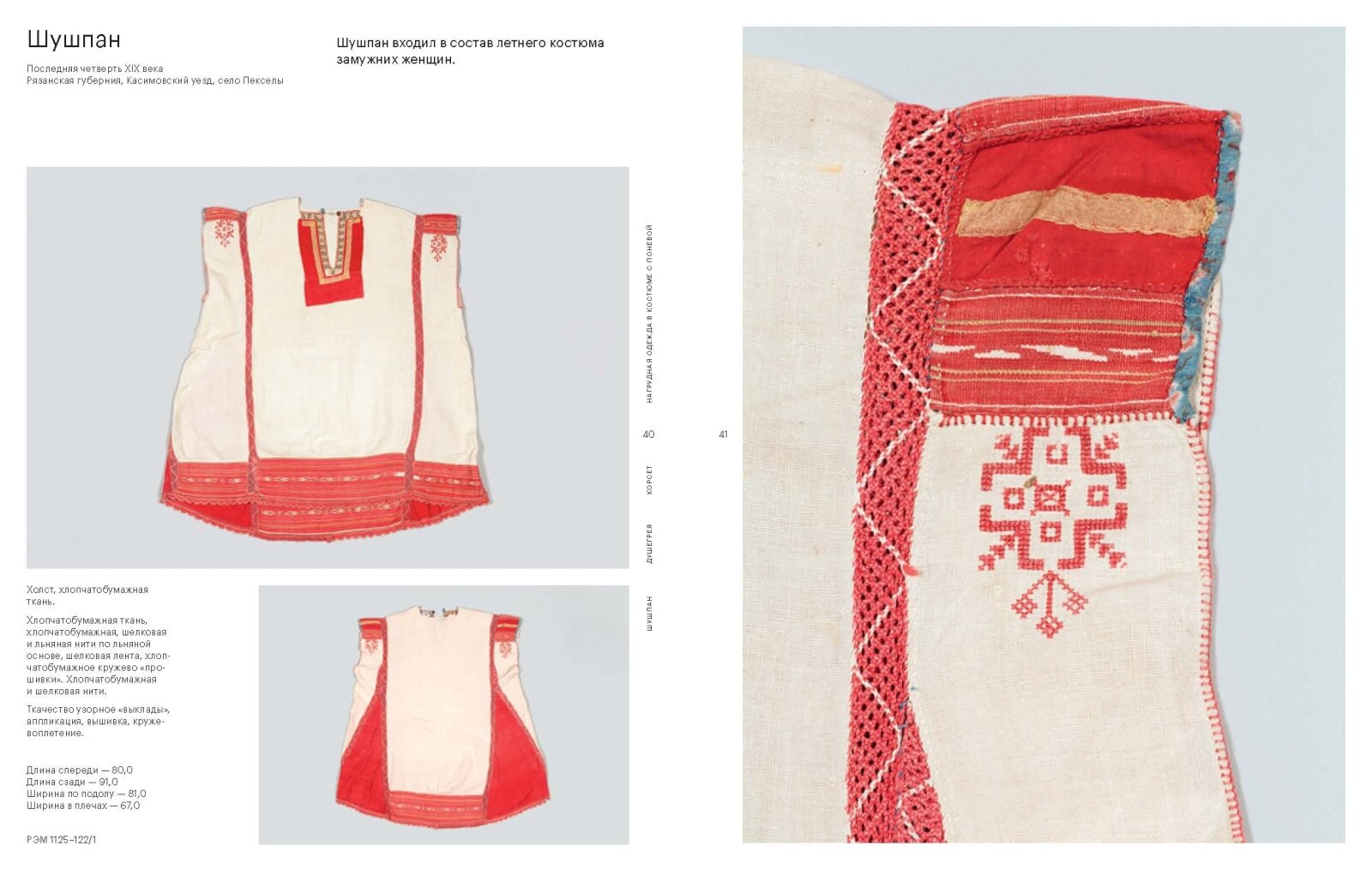 Альбом знакомит читателя с самобытными видами нагрудной одежды, входившими в состав русского народного костюма. Исследовательской и иллюстративной базой издания является собрание русской одежды Российского этнографического музея (Санкт-Петербург).