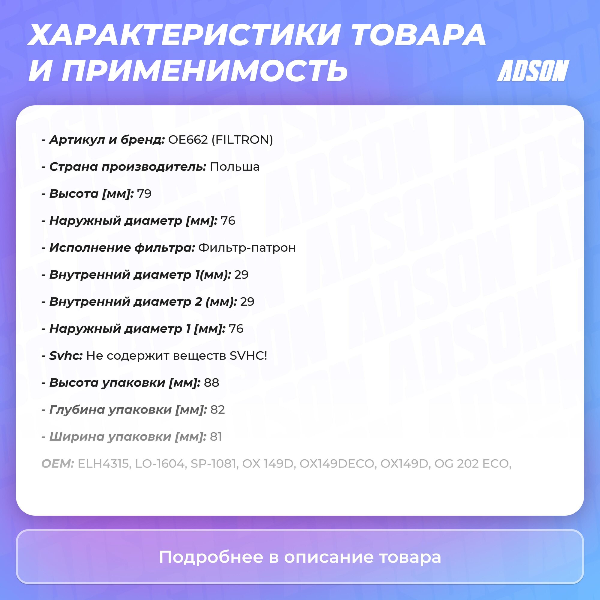 Сервис сравнения цен СкидкаГИД предлагает сравнить цены на товар «Масляный фильтр Filtron OE662»