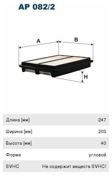 Фильтр воздушный FILTRON AP 082/2 для Daewoo Nubira 1.6/2.0 16V 97> изготовлен с помощью современных фильтрующих материалов, созданных, в частности, на основе целлюлозных или синтетических волокон. Эти материалы обеспечивают эффективность фильтрации на уровне 99,9% для частиц размером всего в несколько микрон.Фильтрующая среда, стойкая к распространению огняВсе воздушные фильтры марки FILTRON имеют фильтрующие среды, которые, в соответствии с классом горючести F1 или S1, не поддерживают огонь (способствуют самоугасанию пламени) и могут защитить пассажиров от пожара транспортного средства в случае всасывания окурка сигареты в систему подачи воздуха.Прочные прокладки воздушных фильтров, обеспечивающие герметичностьДля производства прокладок воздушных фильтров используется уникальная смесь полиуретана, отличающаяся упругостью и устойчивостью к сжатию в экстремально высоких температурах. Благодаря исключительным свойствам прокладок, воздушные фильтры FILTRON сохраняют герметичность в корпусе даже в очень сложных условиях эксплуатации.Складки стабилизированы с помощью перфорированного покрытияСкладки (гофры) воздушных фильтров FILTRON стабилизируются с помощью специального перфорированного покрытия, предотвращающего слипание соседних складок. Благодаря равномерному распределению складок, воздух фильтруется всей поверхностью фильтрующего материала, способствуя полному использованию мощности двигателя.