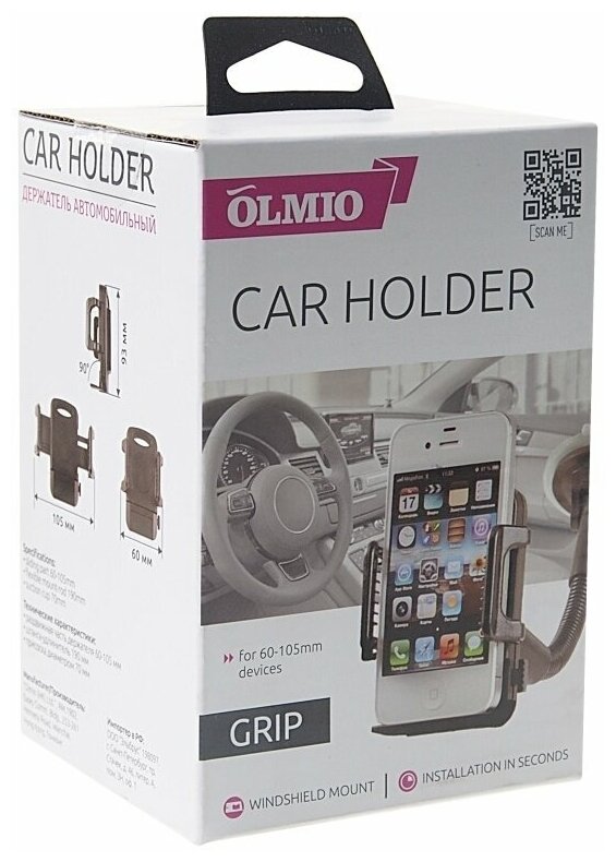 Автомобильный держатель Olmio Grip характеризуется эргономичной конструкцией с гибкой настраиваемой штангой и обеспечивает удобный обзор информации на экране мобильного устройства, не мешая при этом водителю. Крепление с применением присоски обеспечивает удобную и надежную фиксацию держателя на лобовом стекле. Предусмотрена возможность простой настройки ширины автомобильного держателя в пределах 60-105 мм, что подчеркивает широкую совместимость и универсальность. Держатель Olmio Grip изготовлен из прочных материалов с хорошей износостойкостью.