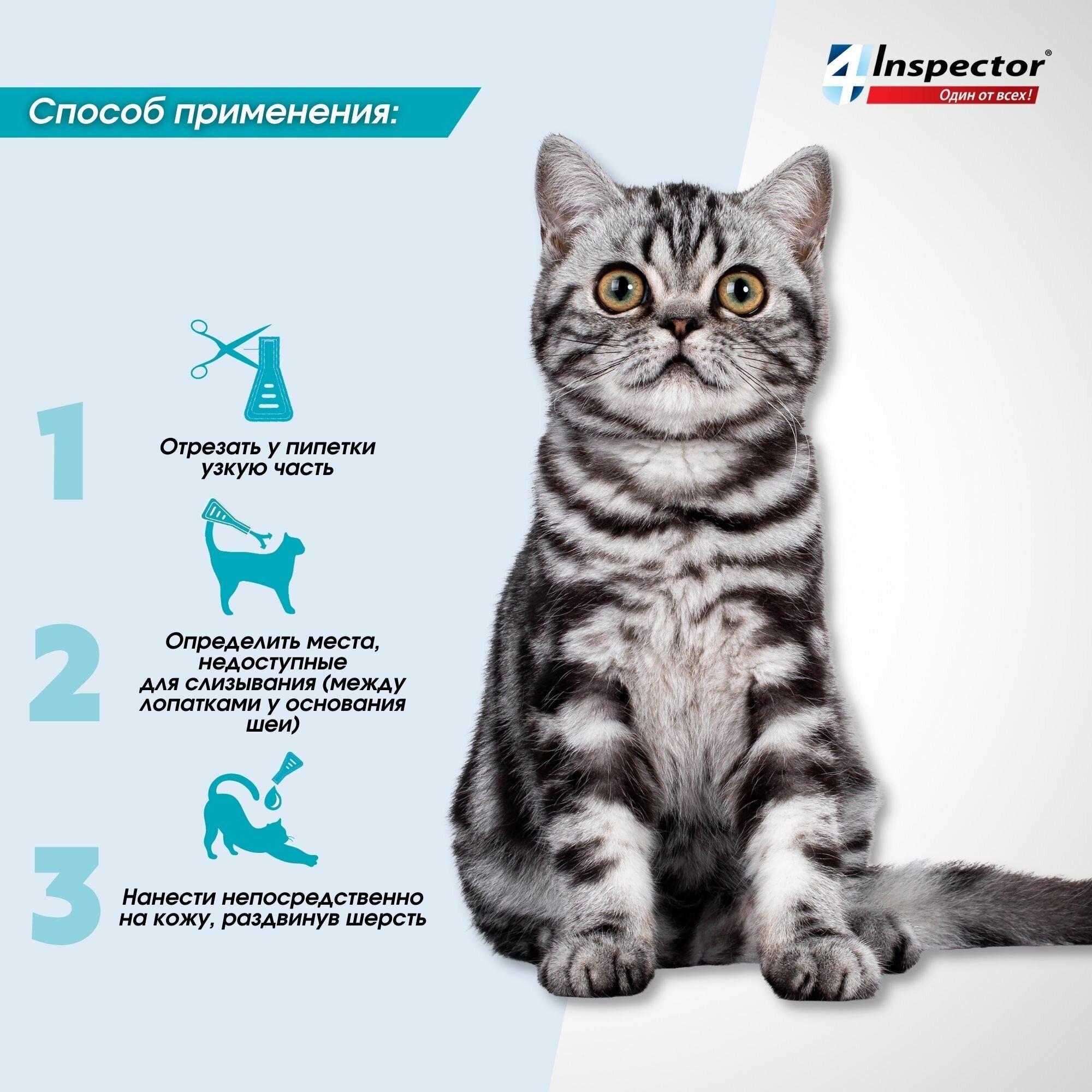 Капли для кошек INSPECTOR Quadro от внешних и внутренних паразитов (от 4-8кг) 1 пипетка