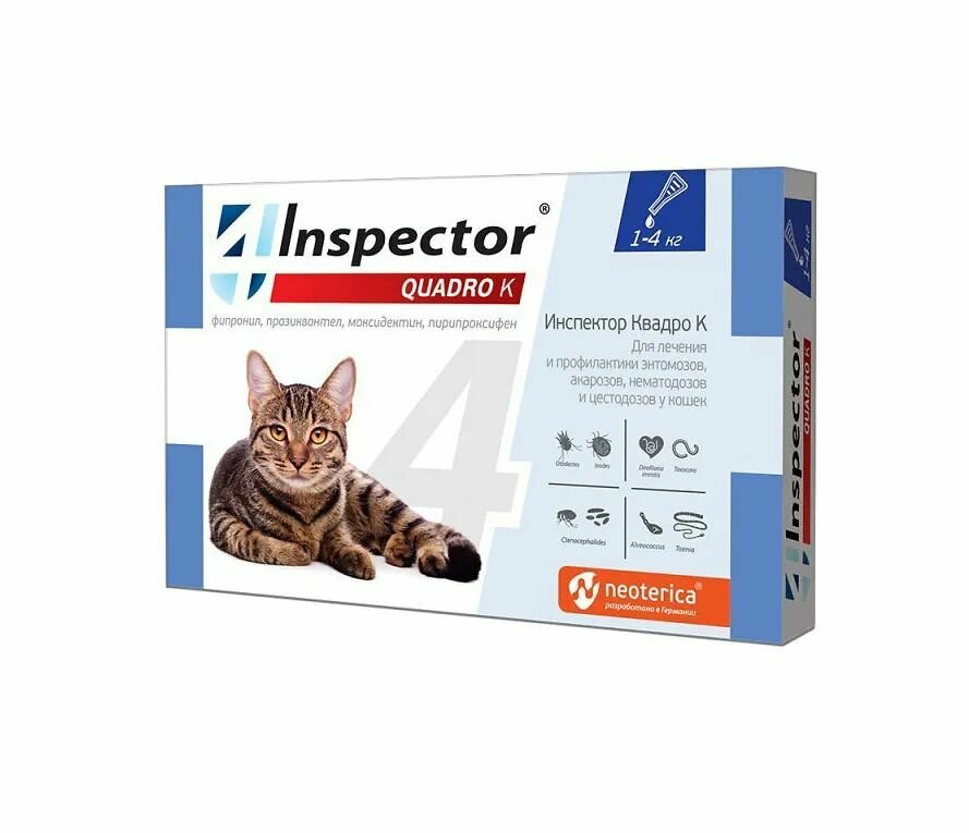 Капли для кошек INSPECTOR Quadro от внешних и внутренних паразитов (1-4кг) 1 пипетка
