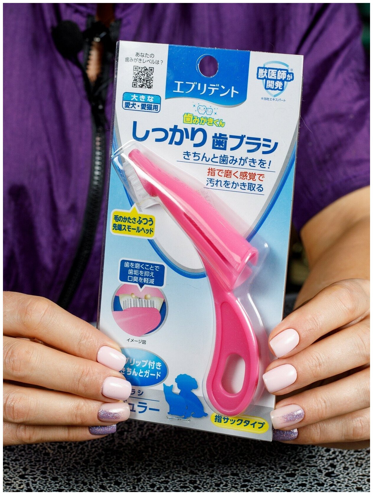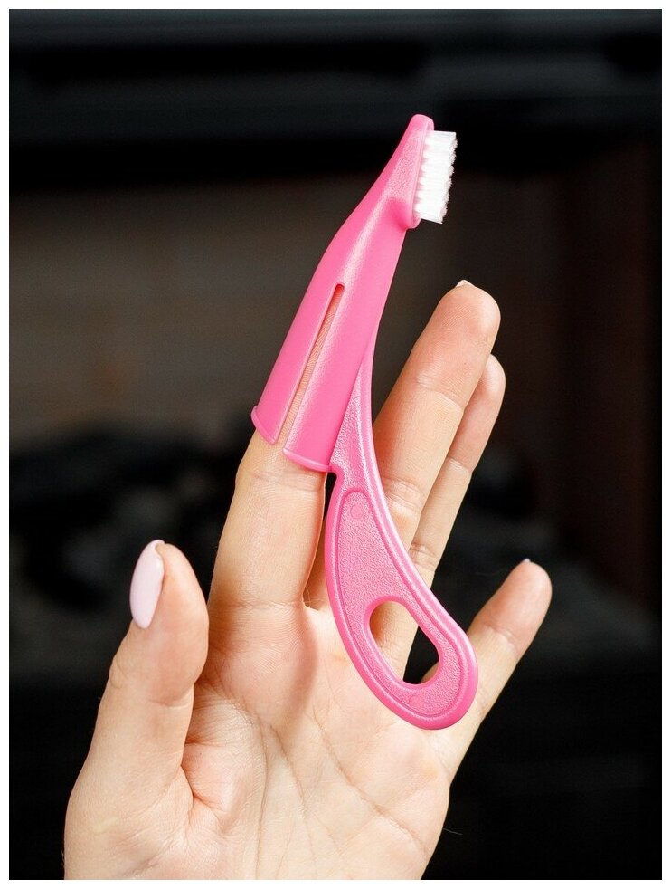 - Прочный пластик защитит палец владельца от травмы, если питомец решит покусать щетку.