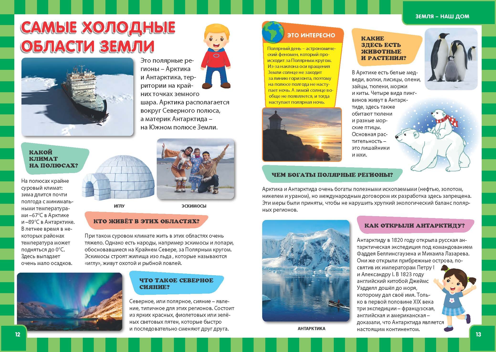 Ваш ребёнок растёт, и ему хочется знать больше: как устроена Солнечная система, когда первый человек полетел в космос, где на Земле холоднее всего, что такое северное сияние... В этой книге мы постарались в краткой и увлекательной форме дать ответы на многие "детские" вопросы. Листая страницы нашей энциклопедии, вы вместе с ребёнком сможете узнать, как выглядели самые разные динозавры, откуда родом домашний кот, кто первым объехал земной шар, чем прославились древние цивилизации. Вы увидите, какие необычные животные обитают на Земле, и узнаете много нового про нашу голубую планету.