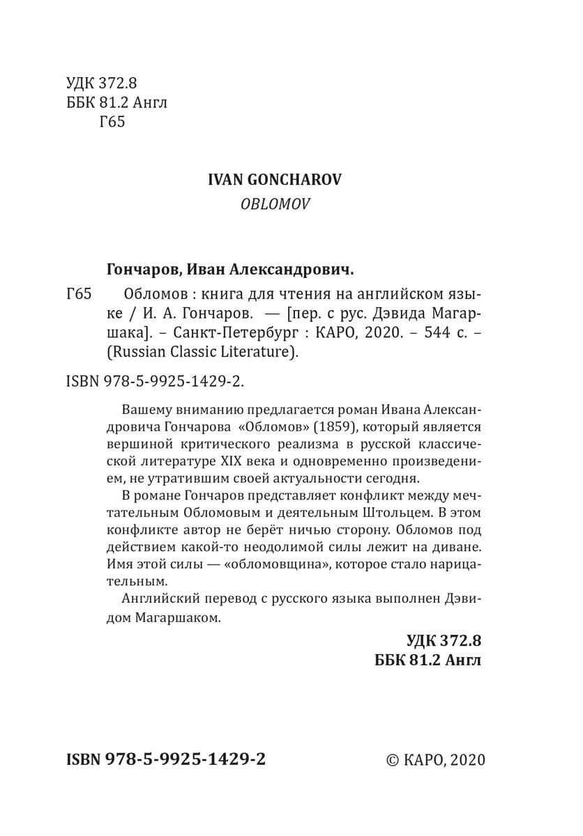 Обломов (на английском языке) (Иван Александрович Гончаров); КАРО, 2020