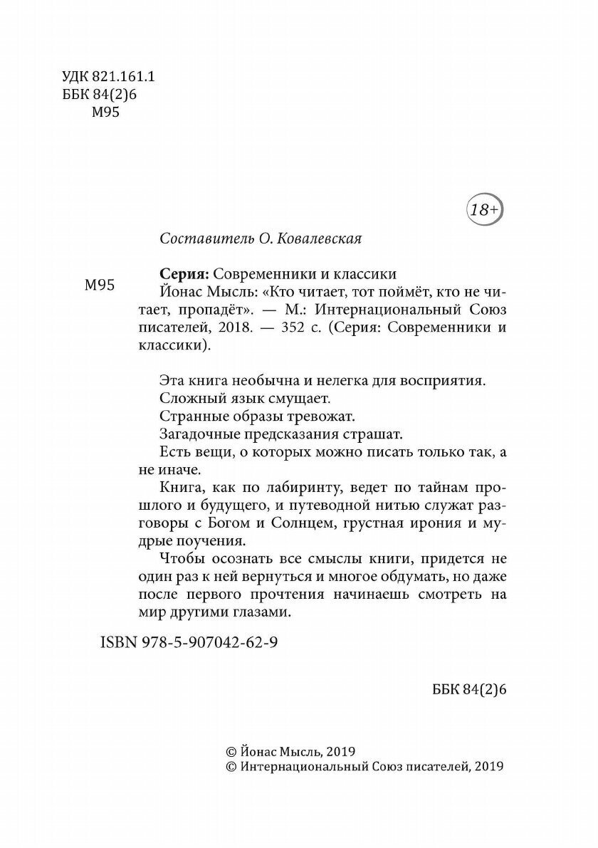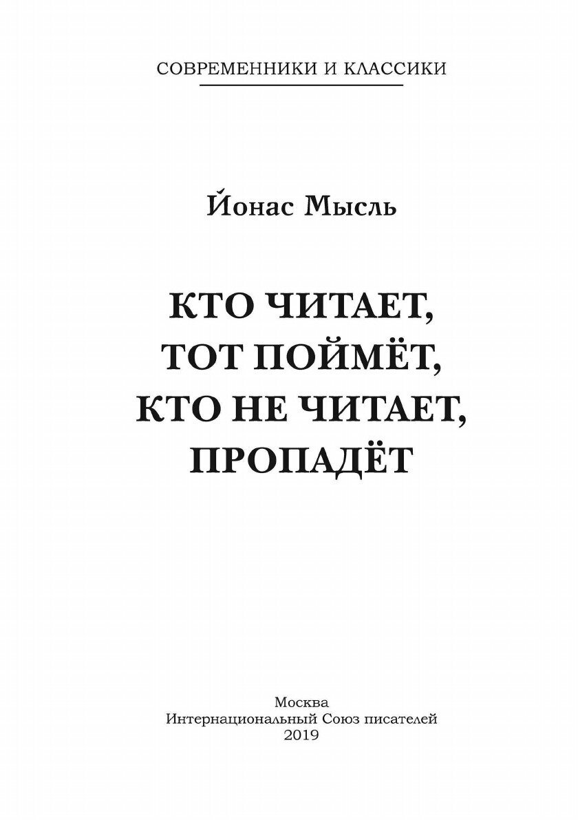 Кто читает тот поймет кто не читает пропадет (Йонас Мысль); "Издательство "Интернационального союза писателей", 2018