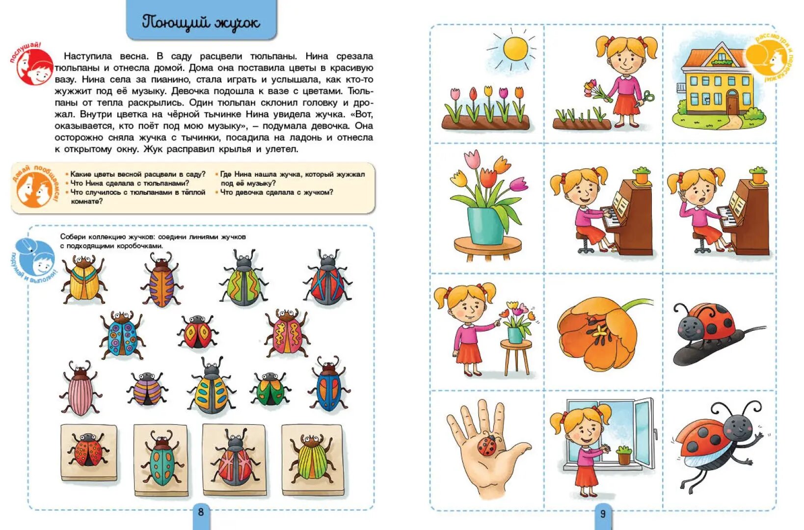 - занятия в виде обсуждения и игры: составить рассказ по картинкам, выполнить задания, раскрасить картинки и дополнить их наклейками.