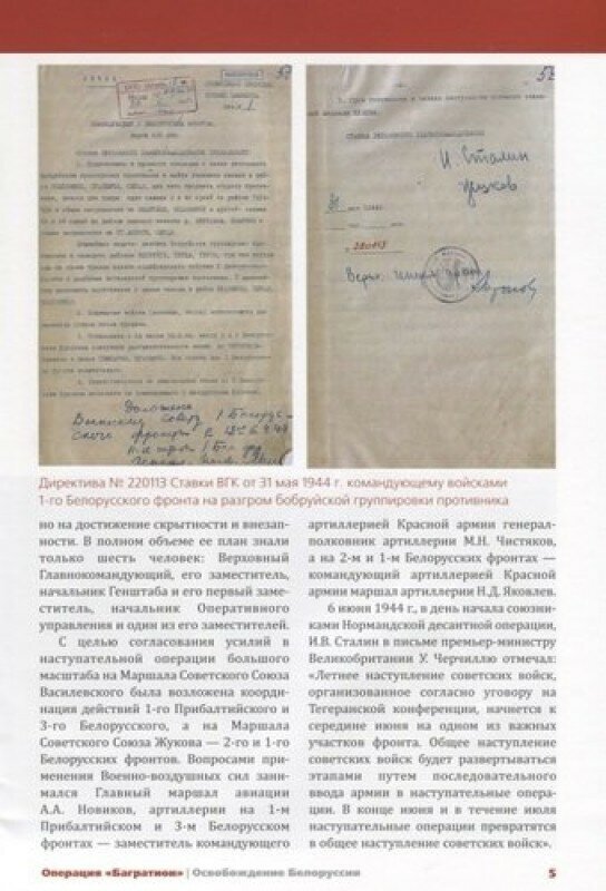 Белорусская стратегическая наступательная операция получила кодовое наименование "Багратион" в честь "льва русской армии" князя, генерала от инфантерии Петра Ивановича Багратиона. В ходе операции Гитлер трижды менял руководство группами армий "Север" и "Центр", переставлял и убирал одного командующего армией за другим. Несмотря на это, войска 1-го Прибалтийского, 1, 2 и 3-го Белорусских фронтов в ходе "пятого сталинского удара" срезали "белорусский балкон", который, как раковая опухоль, терзал тело Белоруссии. В результате были пробиты ворота в Восточную Пруссию и к границам Третьего рейха. Немецкие генералы оценивали операцию "Багратион" как события, "непосредственно приближавшие чудовищную катастрофу", ряд западных историков - как "катастрофу невообразимых размеров, большую, чем Сталинград", политические деятели - как "победы огромной важности".