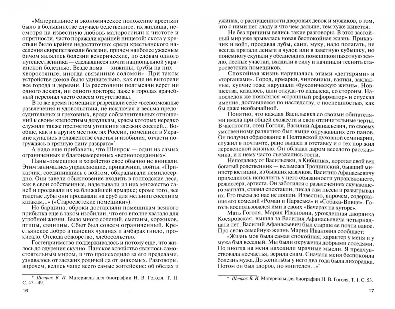 Вместе с тем автор книги выдвигает целый ряд интересных взглядов на творчество Гоголя. Основная его идея, пожалуй, в двойственности, в дуализме гоголевского творчества - это автор книги анализирует достаточно подробно и в принципе вполне убедительно. Также отметил для себя несколько любопытных чисто "бытовых" моментов - например, что Гоголь всегда писал в положении стоя за высокой конторкой. Примечательна и страсть писателя к сапогам, коих у Гоголя всегда было несколько пар.