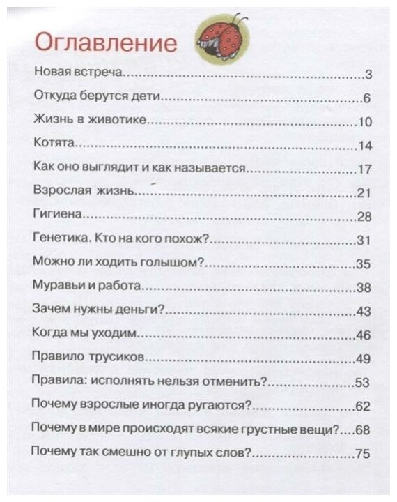 Эта книга может быть пособием для родителей. В ней корректно изложены ответы на "неудобные" вопросы детей. Я не могла найти нужных слов, а теперь есть книга. Или дети прочитают её сами или я воспользуюсь прочитанным. В любом случае, если у детей возникают вопросы чем мальчики отличаются от девочек, пора родителям покупать эту книгу.
