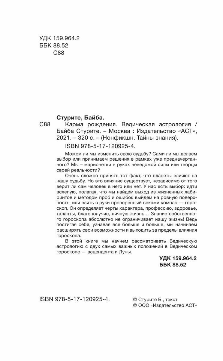 Карма рождения. Ведическая астрология (Байба Стурите); Издательство АСТ, 2020