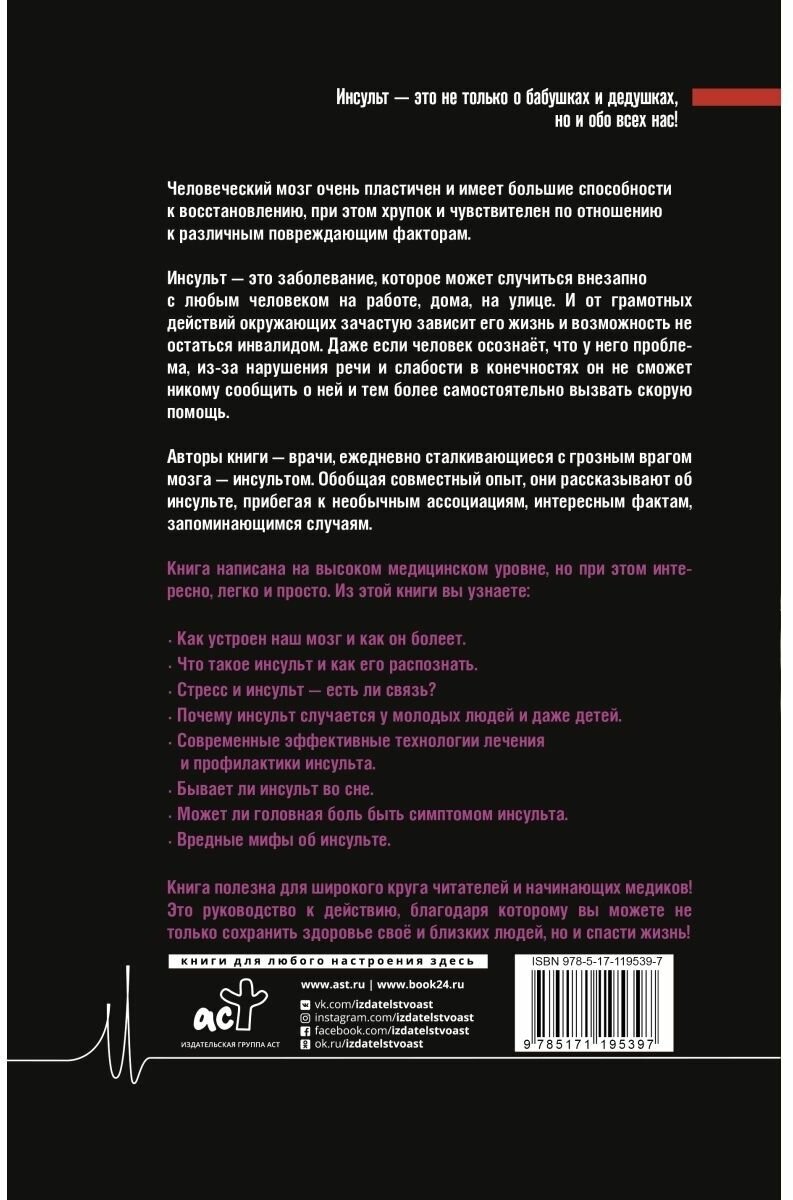 Авторы книги — врачи, ежедневно сталкивающиеся с грозным врагом мозга — инсультом. Обобщая совместный опыт, они рассказывают об инсульте, прибегая к необычным ассоциациям, интересным фактам, запоминающимся случаям.