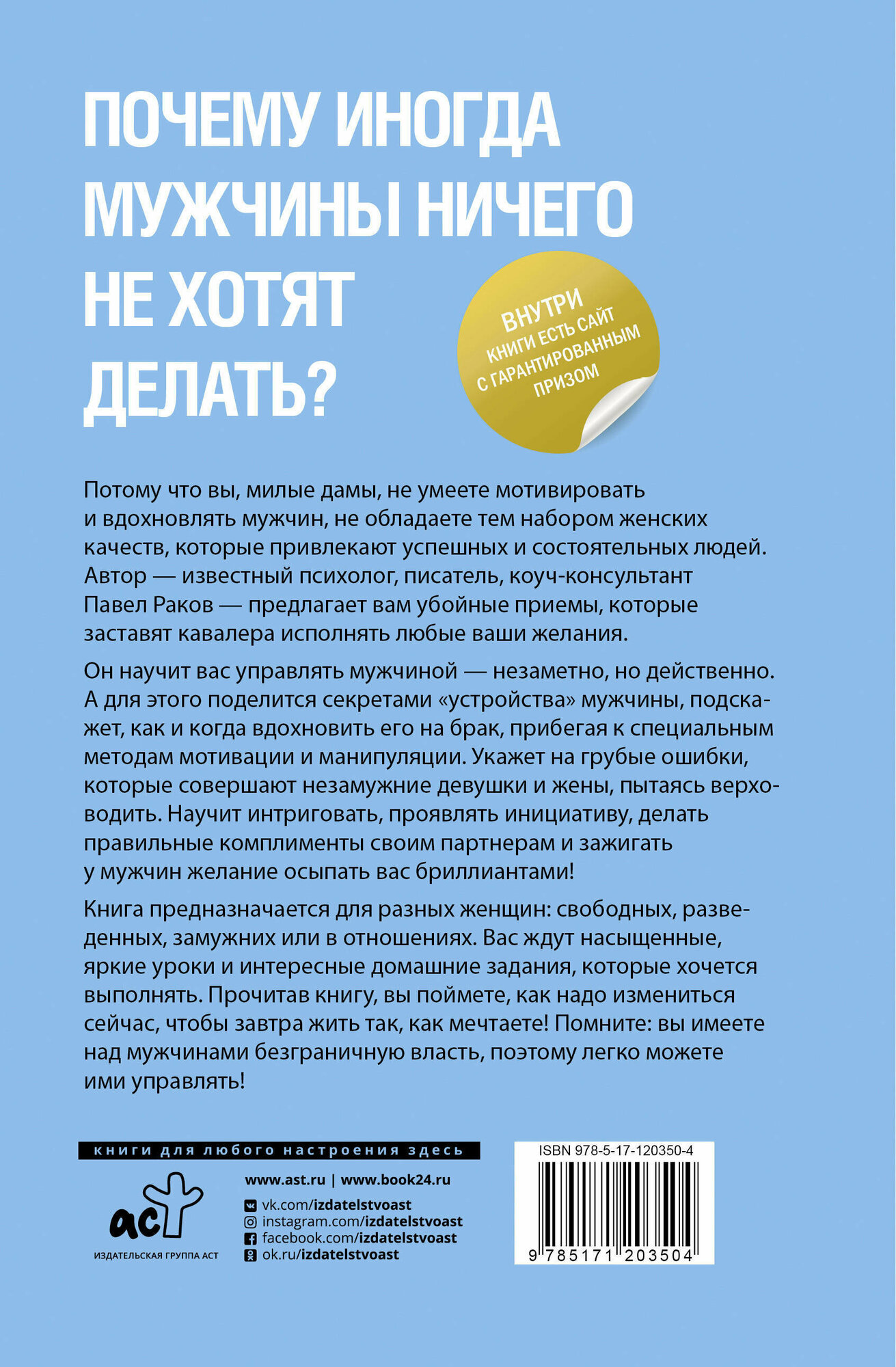 Почему иногда мужчины ничего не хотят делать? Потому что вы, милые дамы, не умеете мотивировать и вдохновлять мужчин, не обладаете тем набором женских качеств, которые привлекают успешных и состоятельных людей. Автор – известный психолог, писатель, коуч-консультант Павел Раков – предлагает вам убойные приемы, которые заставят кавалера исполнять любые ваши желания.