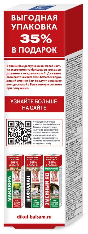 | Способ применения и дозы | гель-бальзам наносить на тело легкими круговыми движениями в течение 3-5 минут до полного впитывания 2-3 раза в день. Гель-бальзам предназначен для ежедневного использования. |