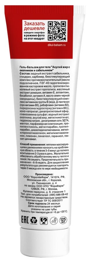 Сервис сравнения цен СкидкаГИД предлагает сравнить цены на товар «Гель-бальзам для тела "Акулий жир с окопником и сабельником" 125мл ООО "КоролёвФарм" (1089041)»