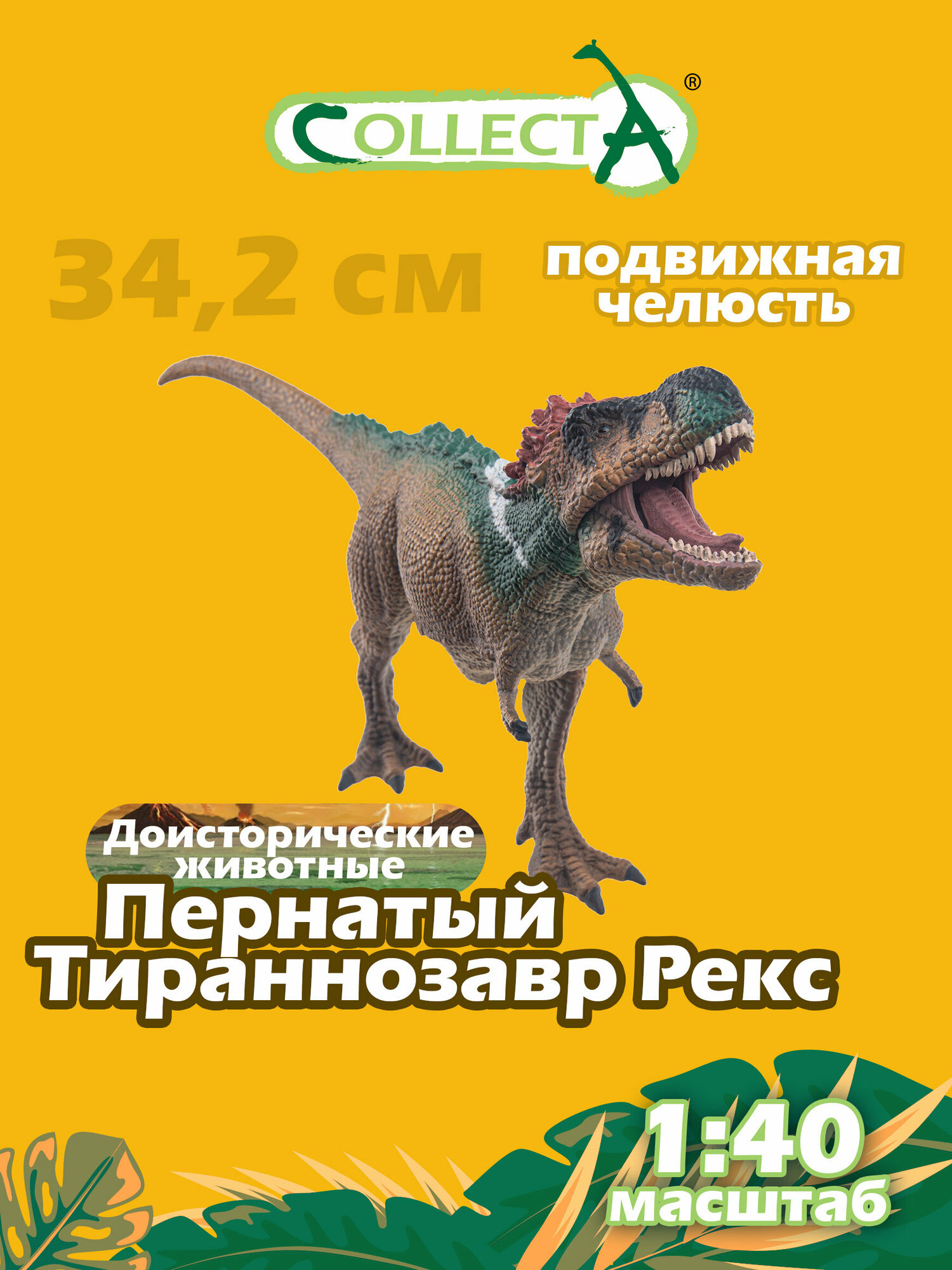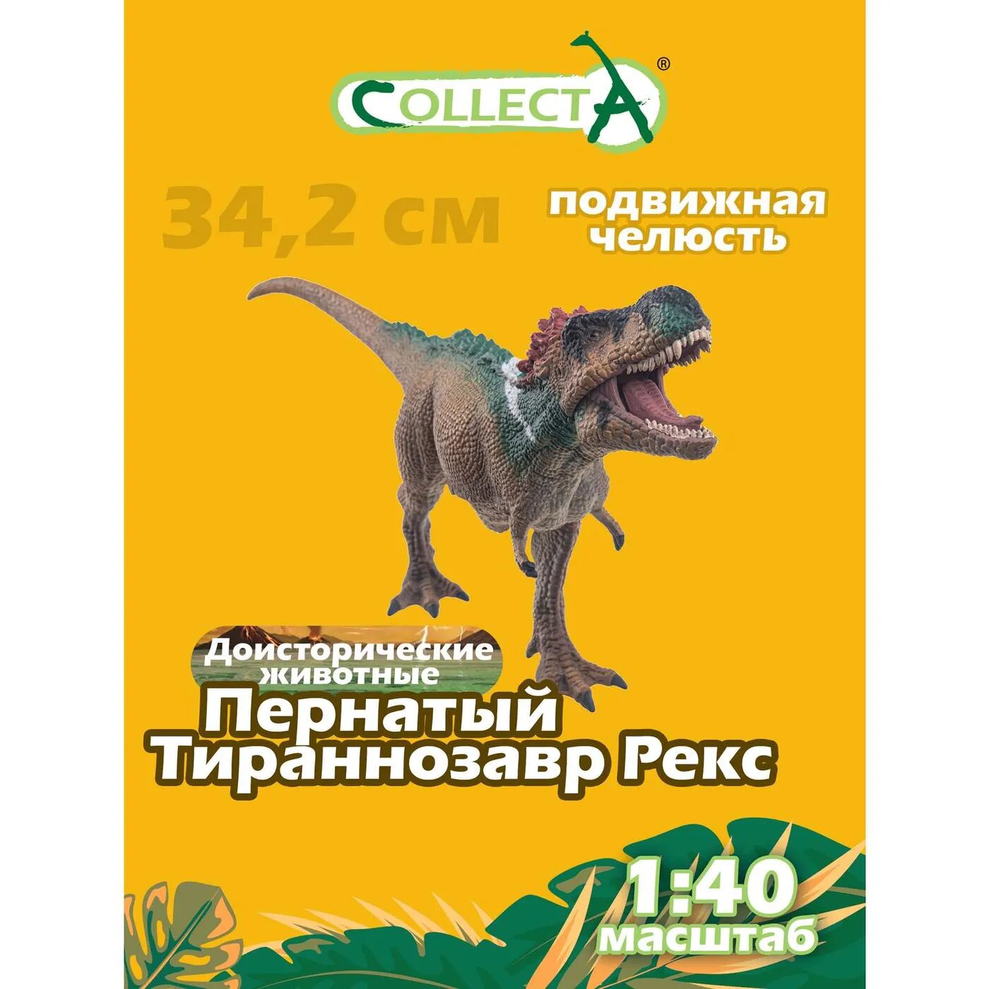 Развивающая игрушка - фигурка "Пернатый Тираннозавр Рекс с подвижной челюстью " в масштабе 1:40 представляет детализированную копию настоящего доисторического динозавра. Игровые фигурки животных Коллекта являются точной копией настоящих животных. В создании этих игрушек принимают участие известные скульптора и палеонтологи. Благодаря качественным сертифицированным материалам их можно использовать как для активных детских игр ребёнка, так и для коллекционирования. Данная игрушка развивает внимание, логическое и образное мышление, фантазию малыша, а также знакомит ребенка с миром доисторических животных. Для детей от 3 лет.