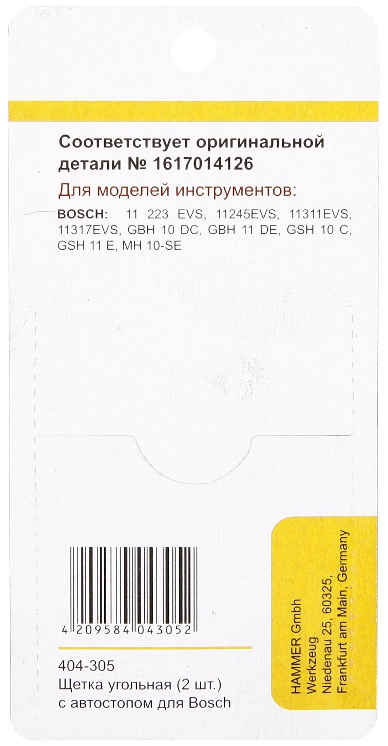 Щётка Hammer Щетки угольные (2 шт.) для bosch (1617014126) a.s.