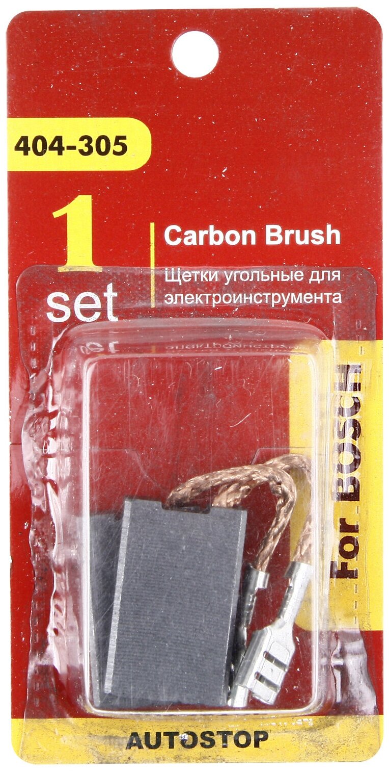 | Название на английском | Carbon brushes RD (2 PCs.) Bosch (1617014126) 6,3х16х26мм AUTOSTOP 404-305 |