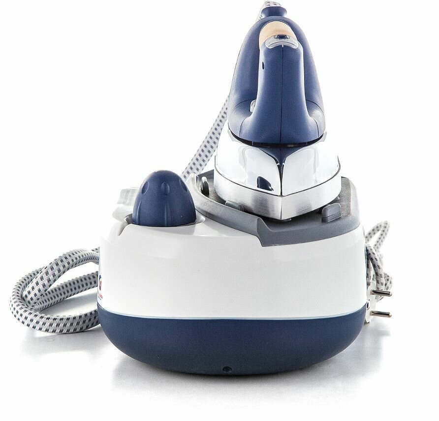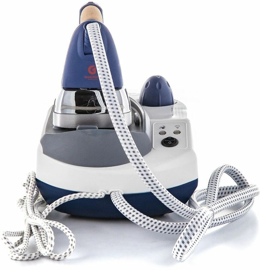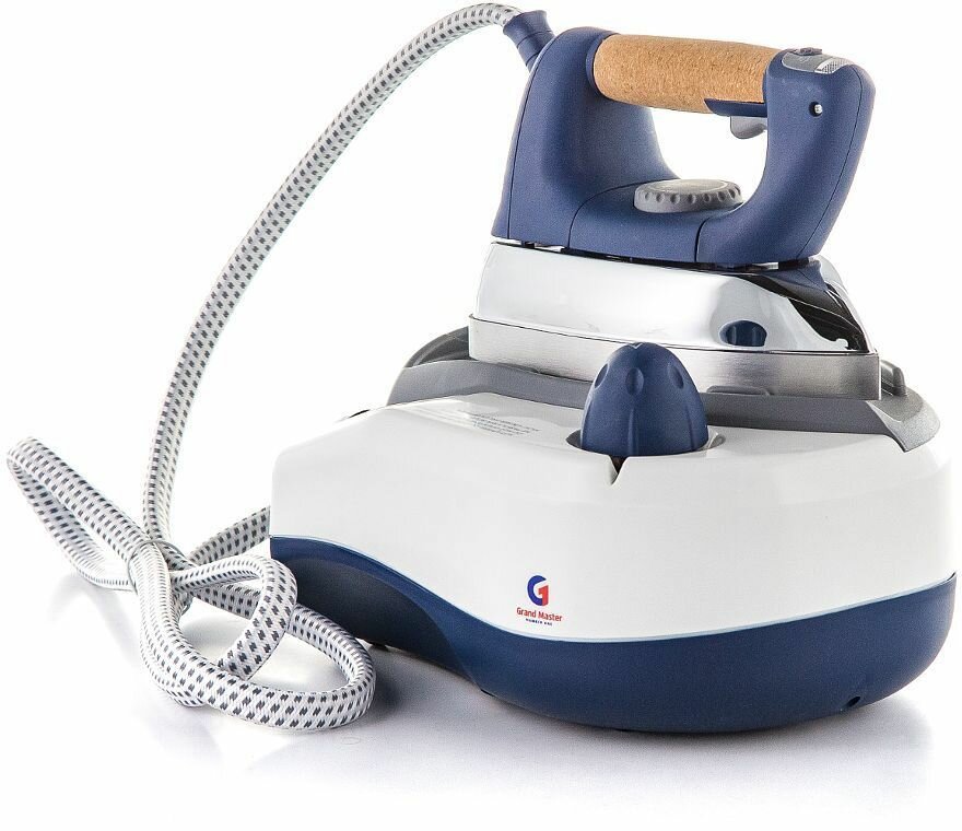 Парогенератор Grand Master – модель бело-синего цвета с механическим управлением и максимальным давлением пара –3 бара. Утюг представлен с подошвой из сверхпрочного алюминиевого сплава. Ее размеры – 21х11 см. Длина сетевого шнура составляет 2 м. Система его автоматической смотки не предусмотрена. Паровой шланг утюга представлен с длиной 1,7 м.