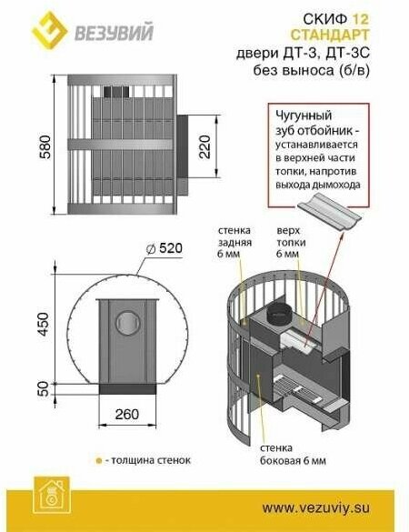 | Материал | сталь (корпус), чугун (дверь, решетка, отбойник) |