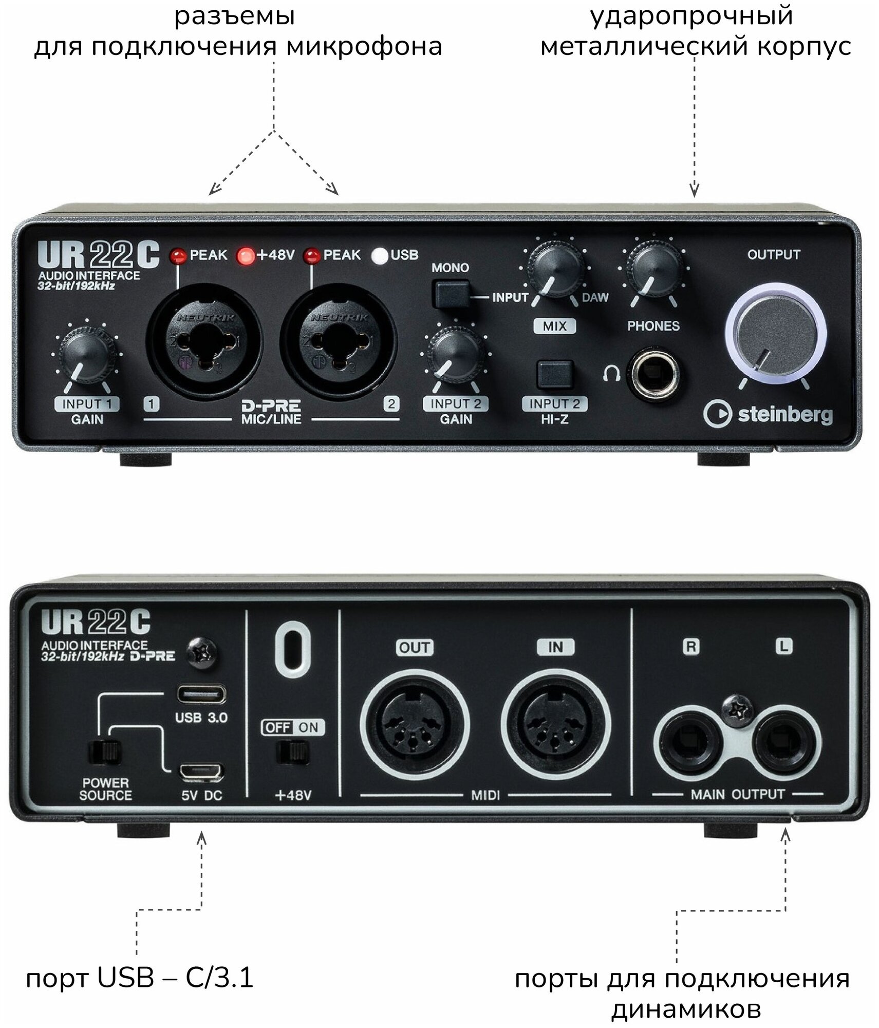STEINBERG UR22C - доступная звуковая карта для домашней студии с DSP процессором