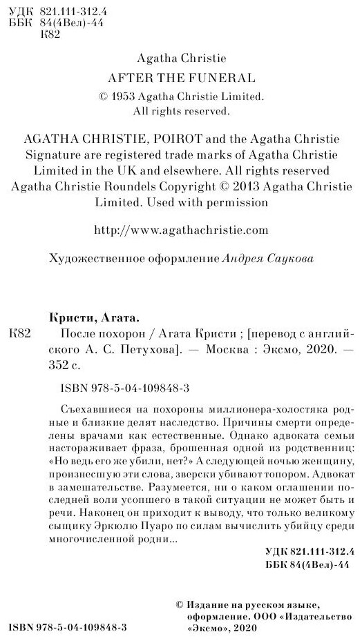 Книга: После похорон (Агата Кристи); Эксмо, 2020
