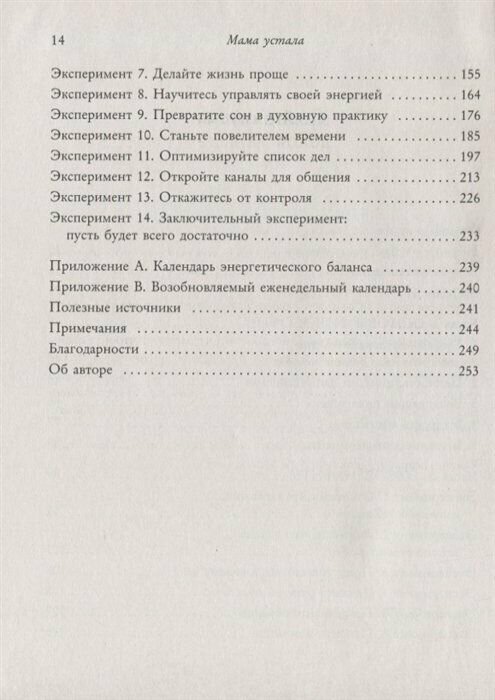 Много информации, но для себя мало что почерпнула. Автор пытается ответить на вопрос: как обустроить жизнь с маленьким ребёнком, даёт советы как разгрузить себя (автор называет их «экспериментами»). В принципе, всё, что написано, это известные вещи, особенно для мам, которые погрязли в рутину с ребёнком и пытаются от туда выйти (просить о помощи, спать во время сна ребёнка, выходить в люди и т.п.). Язык книги не понравился, написано нудновато…