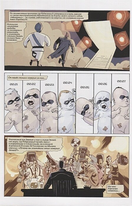 Однако эта история не о их детстве, а о том, что случилось потом, гораздо позже. Знаменитый экс-солист группы My Chemical Romance Джерард Уэй и бразильский художник комиксов Габриэль Ба (Daytripper, Casanova, De:TALES) расскажут нам не просто ещё одну историю спасения мира супергероями. Во-первых, это совершенно удивительные и уникальные супергерои, а во-вторых, акцент в этой книге делается на их взаимоотношениях и внутренних переживаниях, вопросах совести и жизненной цели, а не на умении летать или драться с роботами-убийцами.