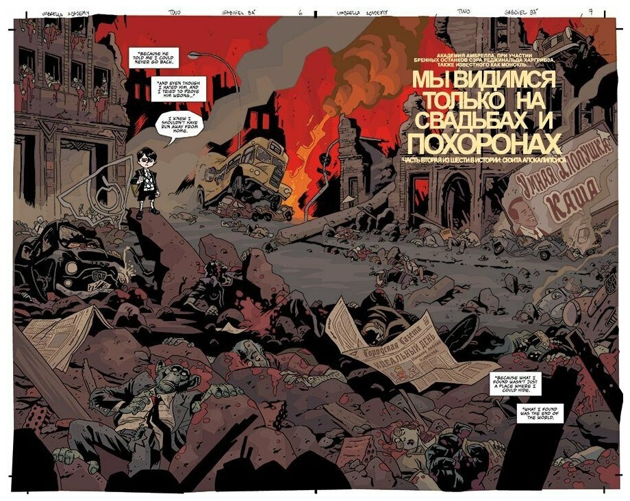 Думаю, самое удивительное во всей этой истории - автор - солист музыкальной группы. Вспоминается фраза героя Дэвида Тьюлиса из фильма "Лондон бульвар" (2010) - "Нынче дозволено заниматься только чем-то одним, вот почему многогранные личности вроде меня предпочитают бездельничать." И вот Джерард Уэй заслуженно показал всем, что это не так, творческий потенциал имеет возможности для реализации не только в чем-то одном, но только если это настоящее. Как мне кажется, история "Академия Амбрелла" доказала, что является достойным продуктом современного искусства. И хотелось бы, чтобы истинного творчества разных артистов было больше, но только и правда истинного, а не бесконечного воспроизводства своего лица/голоса/тела на любой попавшейся продукции.