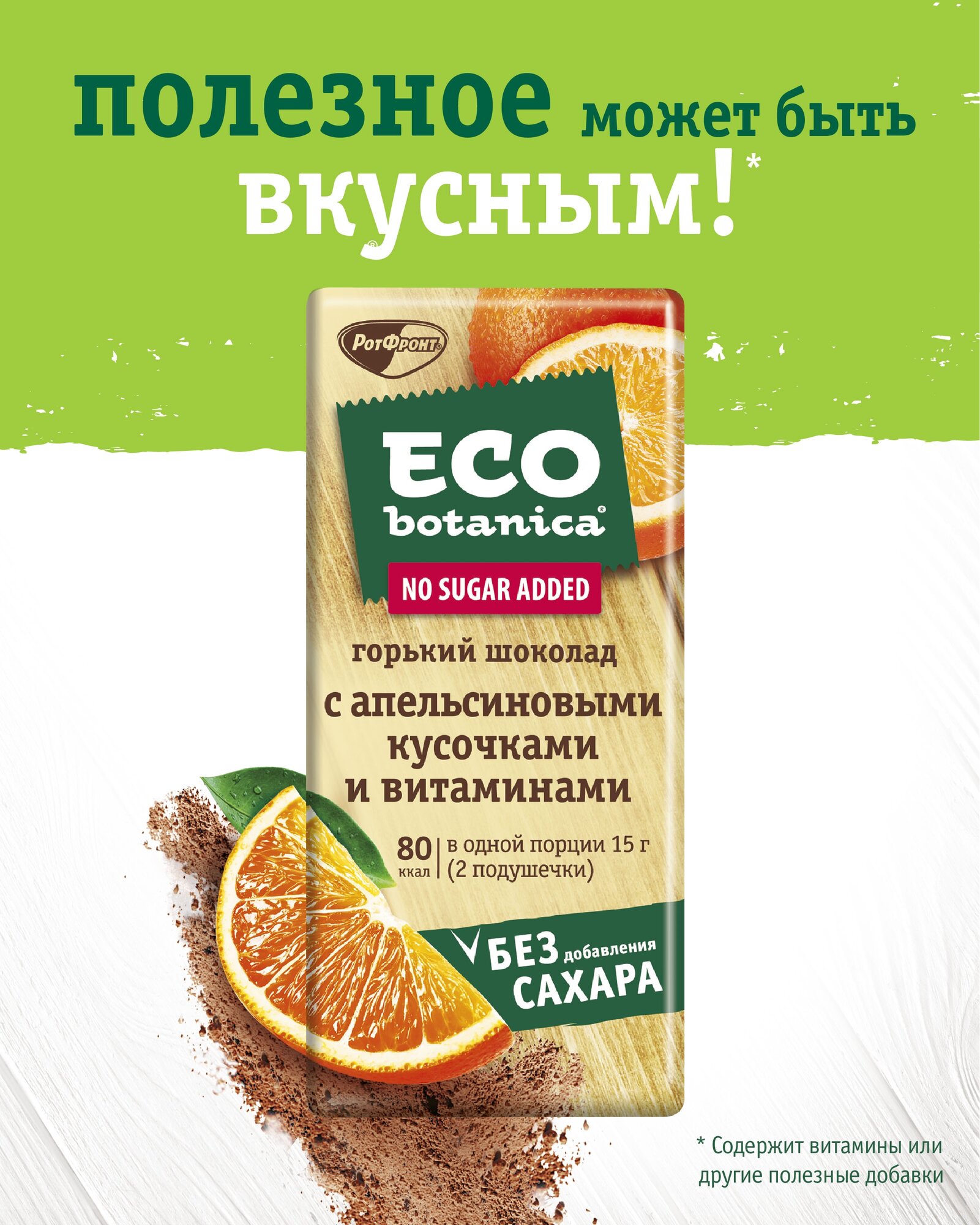 Шоколад Eco-Botanica Горький с апельсиновыми кусочками и витаминами 90г Рот Фронт