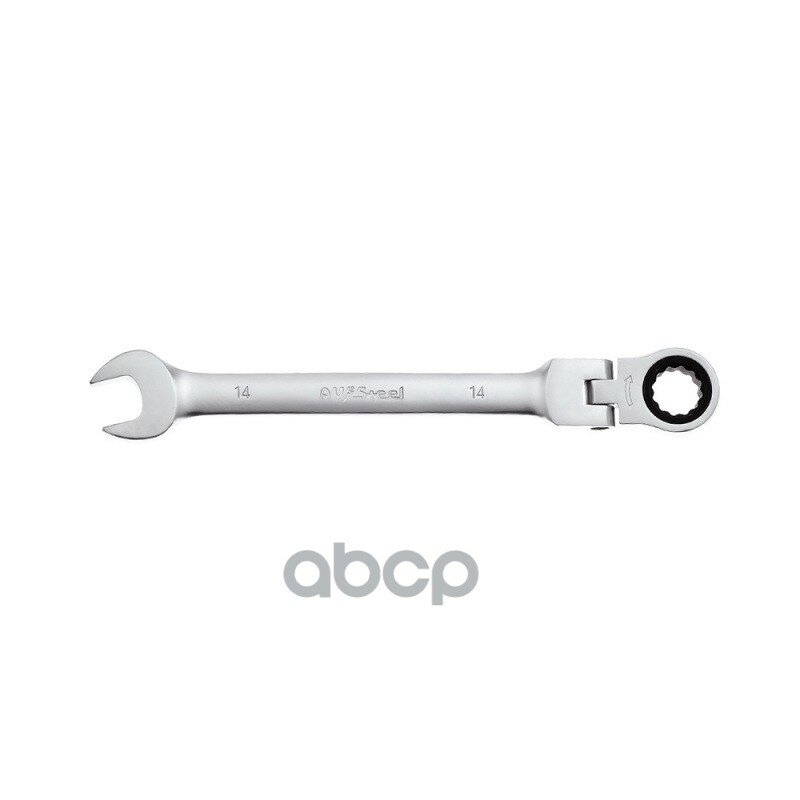 Ключ комбинированный трещоточный с шарниром 14мм AVSteel является современным инструментом, в котором сочетание открытого и кольцевого зева дополнено храповым механизмом в кольцевом зеве, что позволяет ускорить работу с ненагруженным крепежом. Также кольцевой зев с храповым механизмом соединен с основным телом ключа шарниром. Храповый механизм позволяет работать с крепежом в ограниченном пространстве при шаге в 5 градусов. Ключи изготовлены из хромованадиевой стали согласно ANSI B107.9M/107.6, имеют матовую полировку. Трещоточный механизм не предназначен для страгивания прикипевшего или зафиксированного крепежа.
