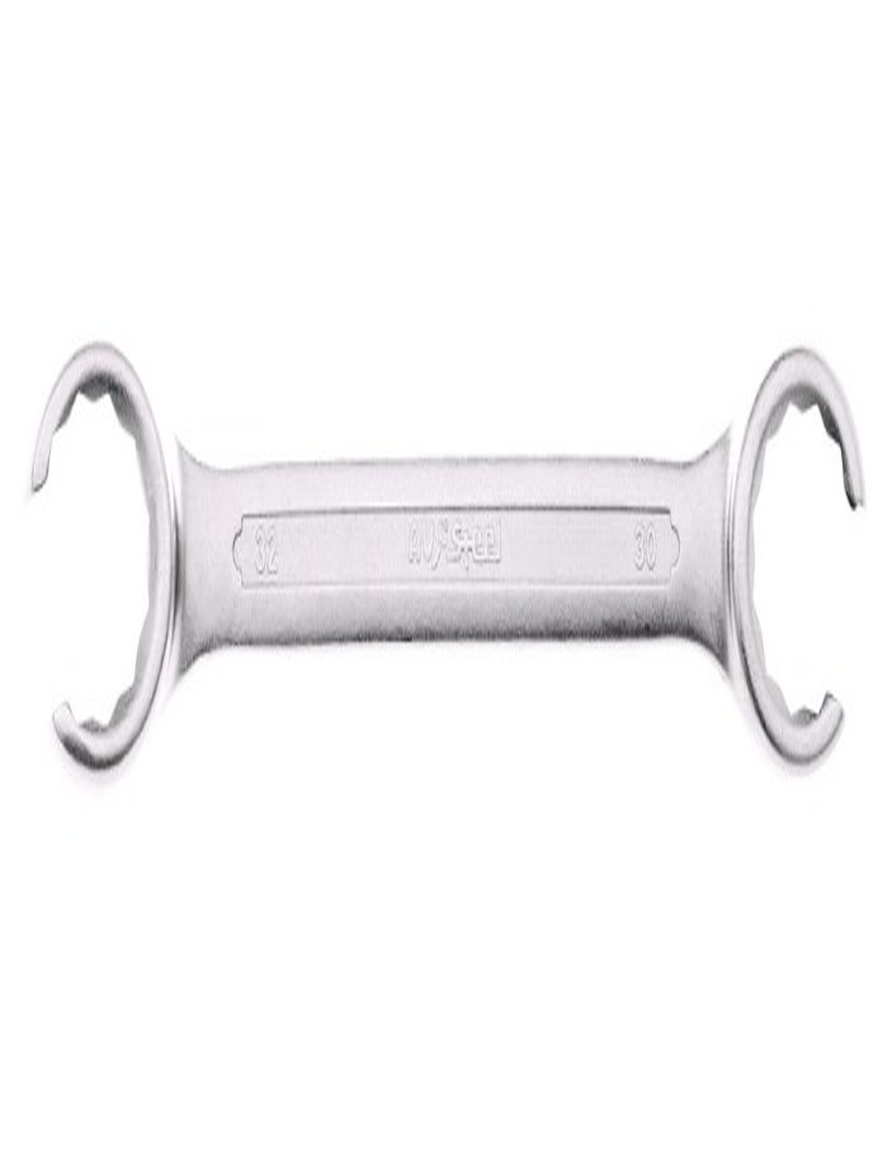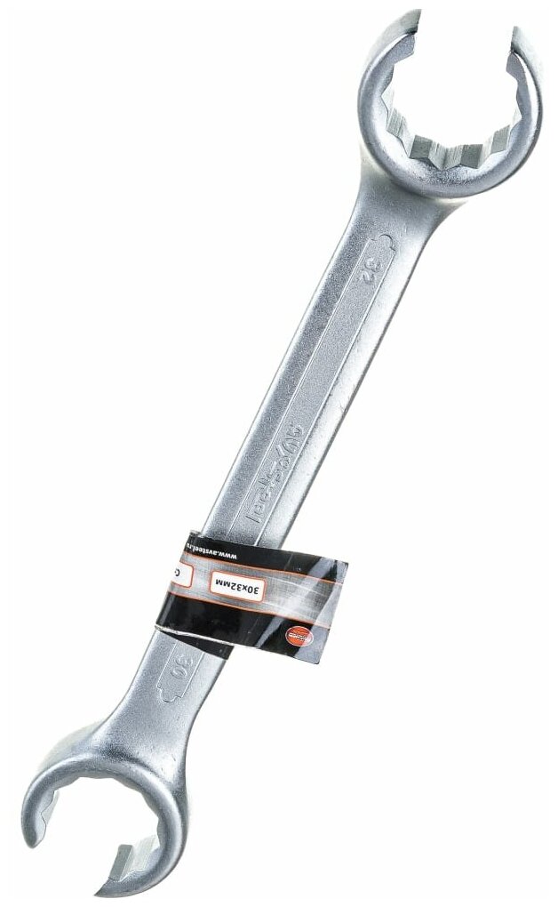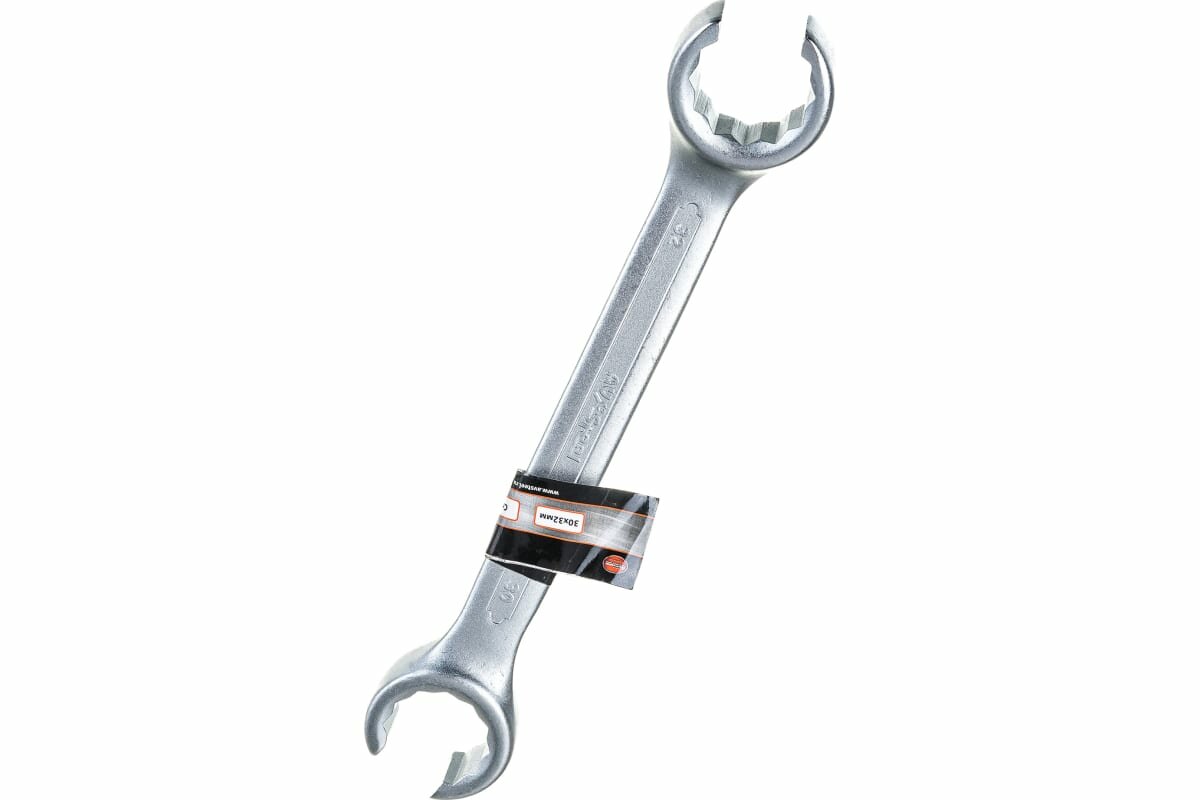 Ключ разрезной 30х32мм AV Steel предназначен для работы с гайками трубопроводов гидравлических и пневматических систем, где невозможно использовать накидной профиль, а рожковый нежелательно. 12-гранный профиль разрезного ключа позволяет иметь 5 пятен контакта, что существенно снижает нагрузку и отодвигает порог необратимой деформации рабочего профиля крепежа.Рабочая часть имеет отклонение и отгиб в 15 градусов от оси тела ключа.Ключ изготовлен в соответствии со станадартом DIN3118 из хромованадиевой стали, закален, имеет хромоникелевое покрытие.