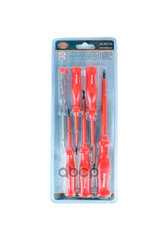 Набор диэлектрических отверток 5 предметов с тестером AV Steel - надежный инструмент для работы с крепежом под напряжением. Диэлектрическое покрытие стержней обеспечивает полную защиту от поражения электрическим током. Удобные рукоятки обеспечивают надежный захват в руке во время работы.