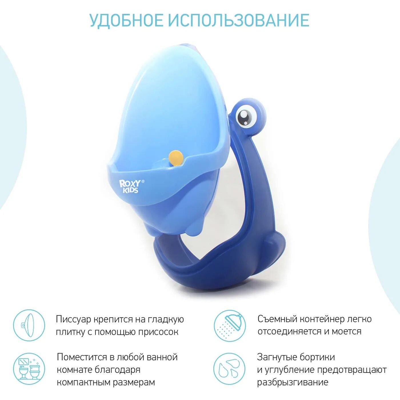 Писсуар для мальчиков ROXY-KIDS Лягушка с прицелом выполняет две важные функции. Во-первых, он помогает приучить мальчиков с самого раннего возраста к хождению во взрослый туалет, а во-вторых, удовлетворяет потребность малышей во всем подражать родителям.Особенности:Писсуар можно закрепить в любое место на стене на надежные присоски.Он сделан из безопасного и качественного пластика.Писсуар для мальчиков выполнен в четырех универсальных цветах. Небольшие размеры писсуара позволяют повесить его в любой ванной комнате.Писсуар оснащен специальным "прицелом", чтобы малыш попал наверняка.