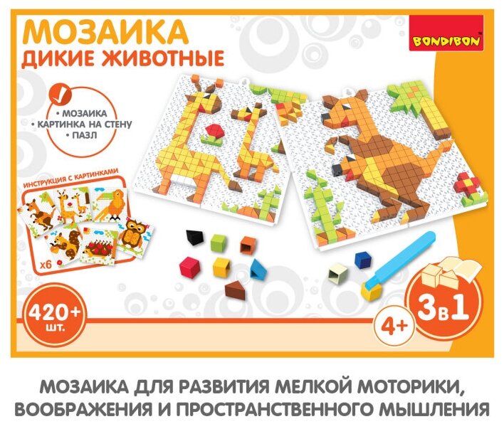 Сервис сравнения цен СкидкаГИД предлагает сравнить цены на товар «Мозаика Bondibon "Дикие животные" 420 деталей (ВВ3032)»