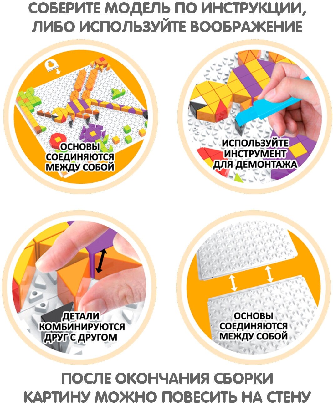 Соберите понравившуюся вам модель по инструкции либо используйте ваше воображение. После окончания сборки можете прикрепить к основе крючок и повесить на стену. Если вы хотите разобрать картинку, используйте палочку для более легкого отсоединения деталей от основы.